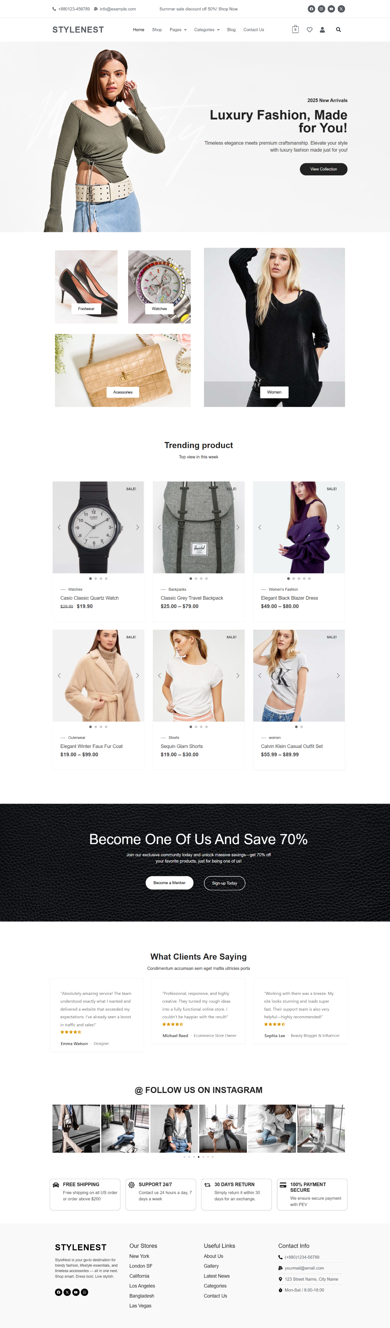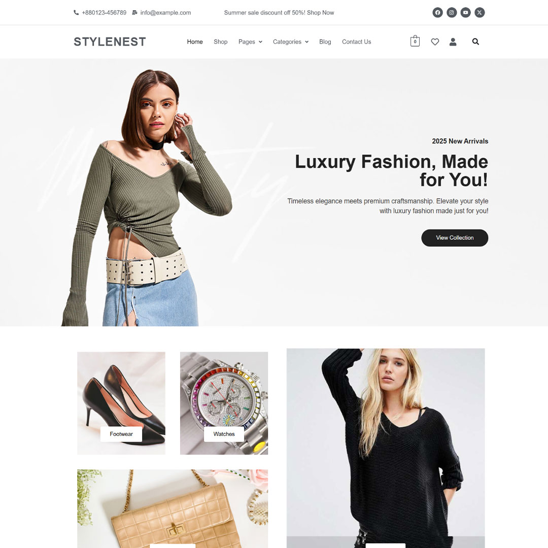 Stylenest is an attractive and modern WordPress WooCommerce theme made for minimal fashion stores. It is fully responsive, cleanly designed, and highly customizable, thus an excellent choice for clothing boutiques, lifestyle brands, and online apparel shops. The theme is also compatible with WooCommerce and hence, it makes your store experience smooth and has a seamless connection to this plugin. Stylenest is very easy to install, SEO-friendly, and super fast. It allows you to establish your fashion store in a more elevated and simplified way.