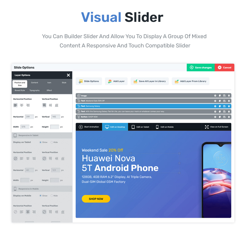 Visual Slider : Choose from a variety of slider sizes and configurations to showcase your products and promotions prominently on your site.