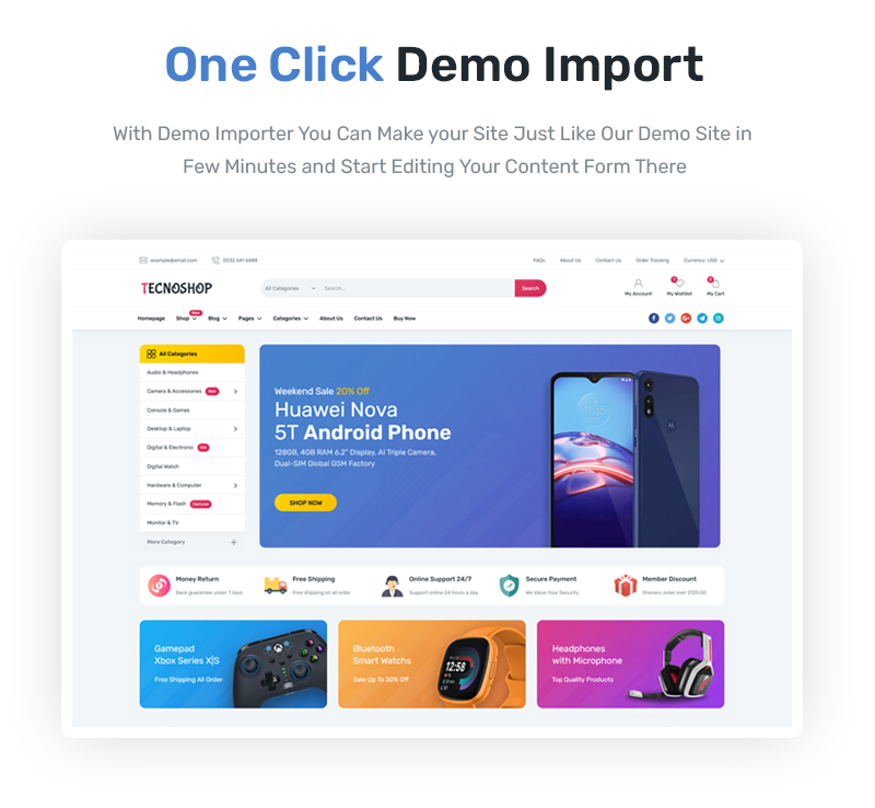 "Tecnoshop" is a versatile WordPress theme designed for online businesses and e-commerce websites. This theme offers a wide range of features to help you create a powerful and visually appealing online store. Here are some of its key features: