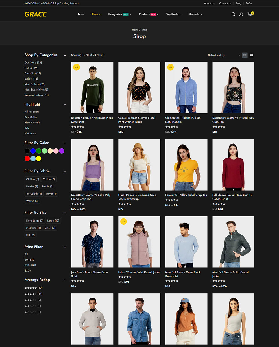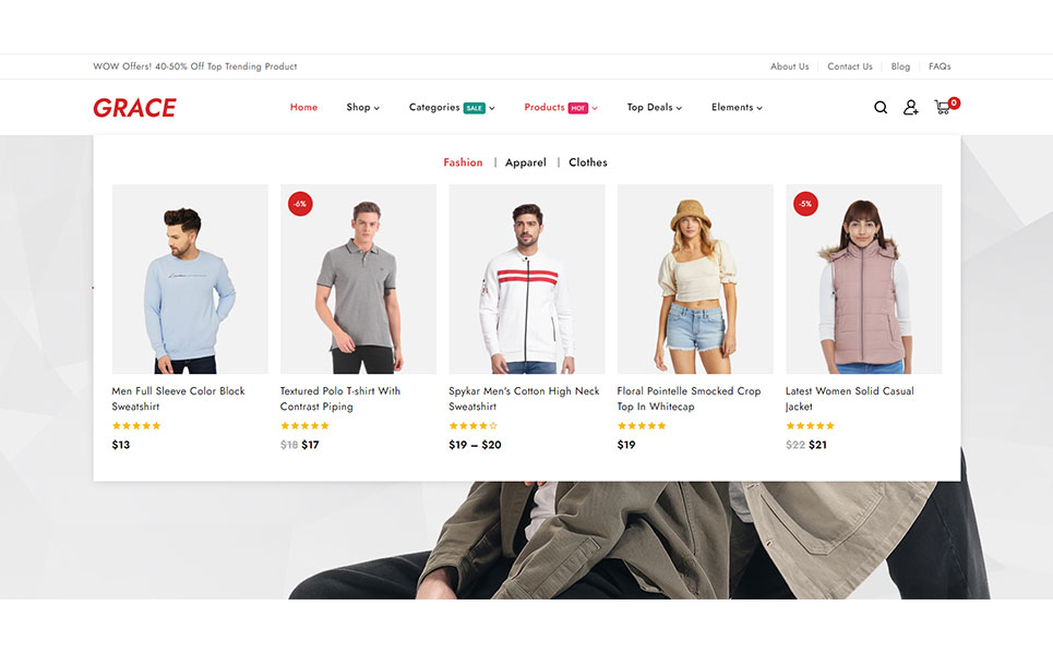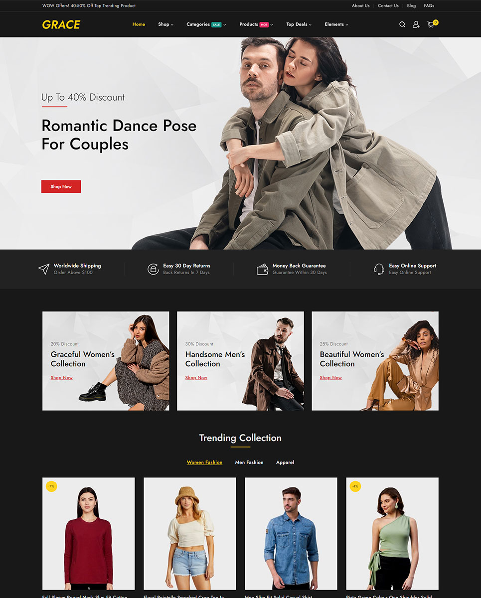 "The Grace" - Minimal Fashion Store Elementor WooCommerce Responsive Theme is a sophisticated and versatile WordPress theme designed for any types of fashion oriented products with a nice and modern design layout, easy and intuitive to use for entrepreneurs. The Grace theme is clean, modern, user-friendly with many functions that will be just perfect for your eCommerce project. With its seamless integration of Elementor and WooCommerce, this theme offers a powerful and user-friendly platform for creating a stunning online shopping experience. Theme is great and easy to use without any coding knowledge.