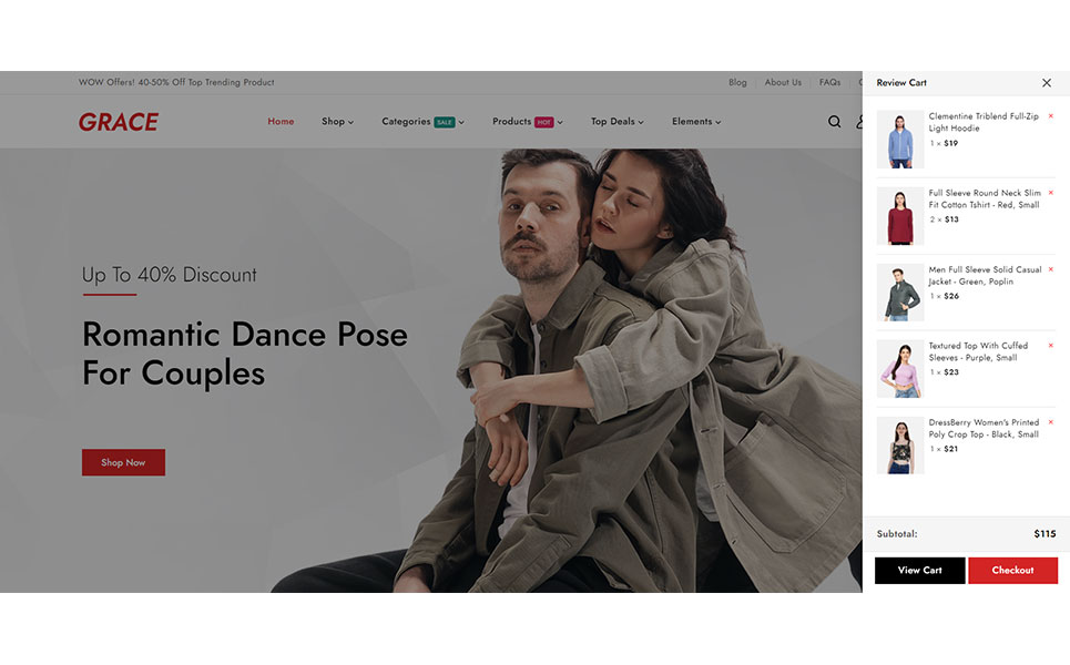 The Grace boasts a clean and minimalist design, putting the focus on your products and creating an elegant and modern shopping atmosphere. With integrated WooCommerce plugin, the theme is fully compatible, ensuring smooth product listing, cart management, and secure transactions to effortlessly manage your online store.