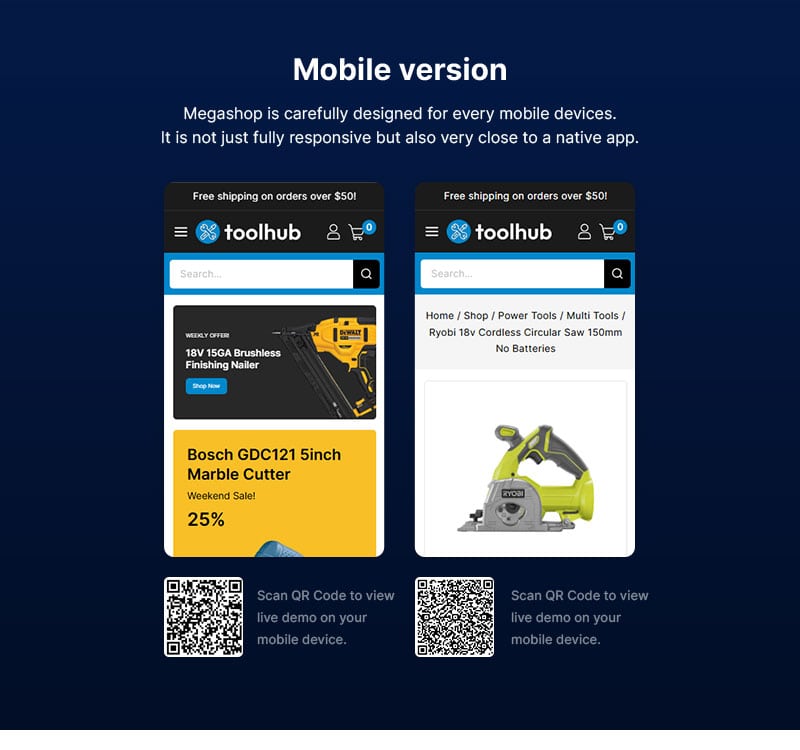 Toohub is a high-performance WooCommerce theme designed specifically for online stores selling tools, power equipment, spare parts, and automotive accessories. With its modern, responsive design and powerful eCommerce functionality, Toohub ensures a seamless shopping experience for your customers while offering easy customization and management for store owners.