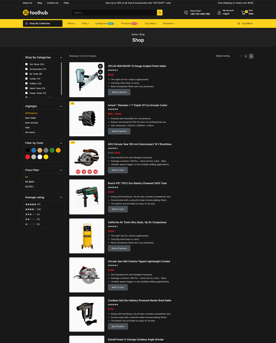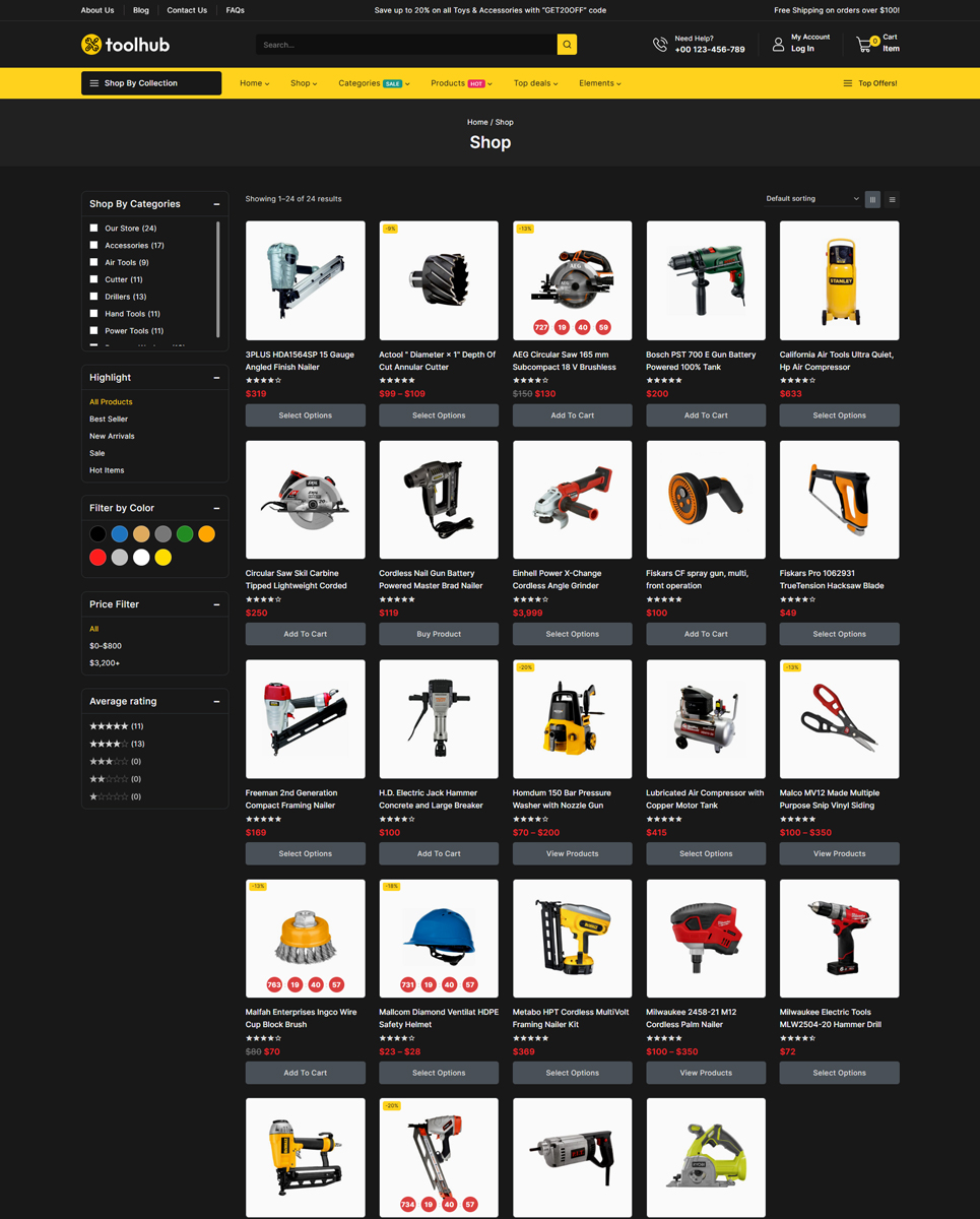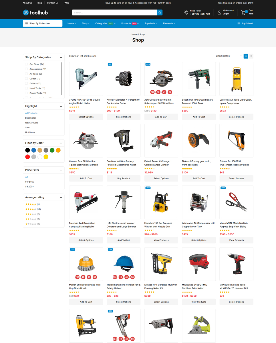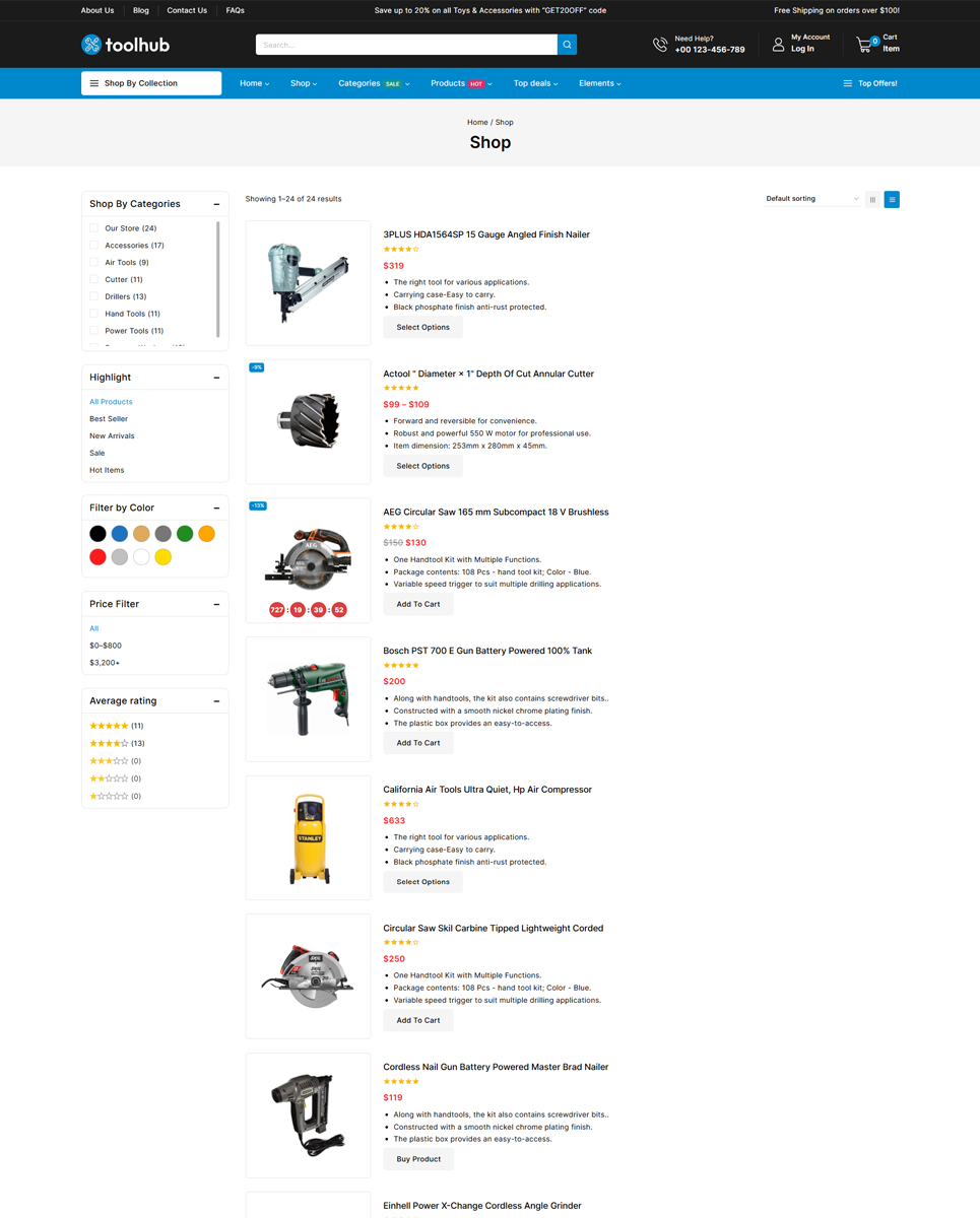 Toohub is a high-performance WooCommerce theme designed specifically for online stores selling tools, power equipment, spare parts, and automotive accessories. With its modern, responsive design and powerful eCommerce functionality, Toohub ensures a seamless shopping experience for your customers while offering easy customization and management for store owners.