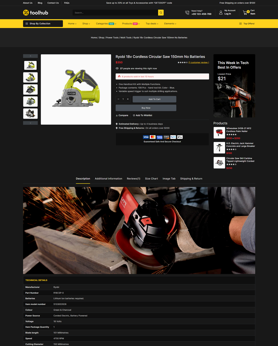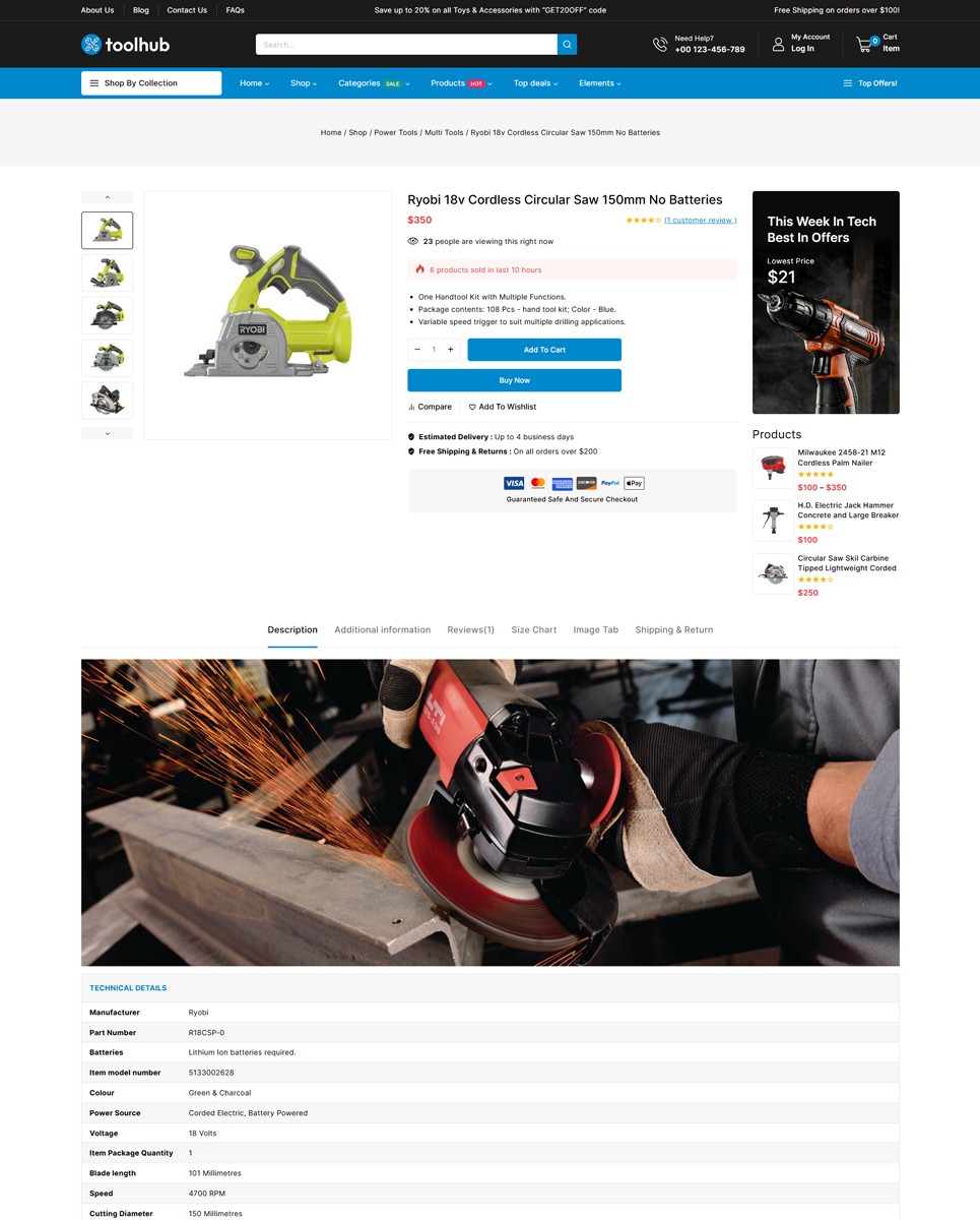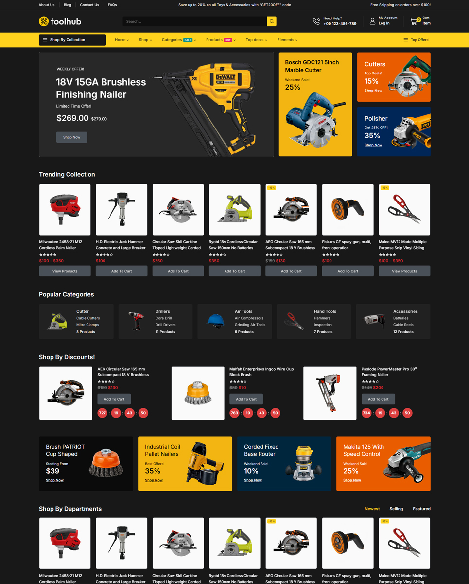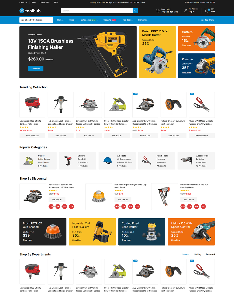 Toohub – Tools, Power Equipment, Spare Parts, and Auto Parts WooCommerce Theme