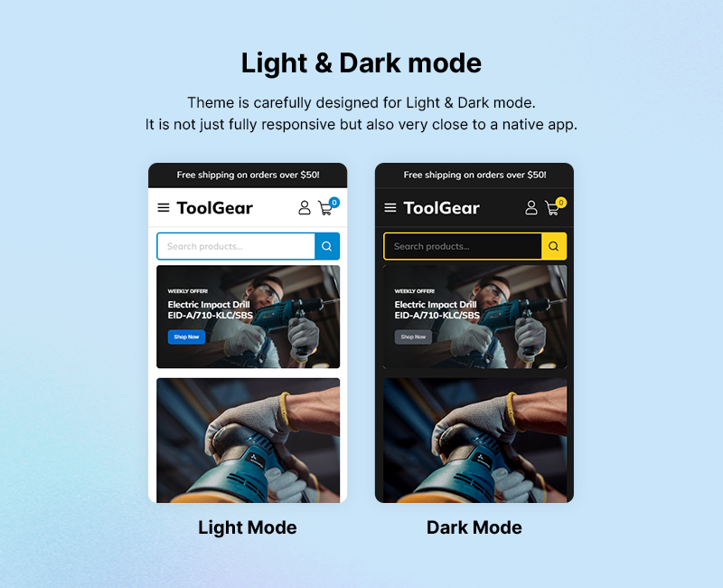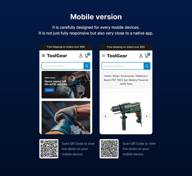 Whether you operate a hardware store, machinery parts shop, industrial supply business, or general tools store, Toolgear adapts perfectly to your brand. Its professional design and rich features make it easy to create a trustworthy, sales-driven online store.
