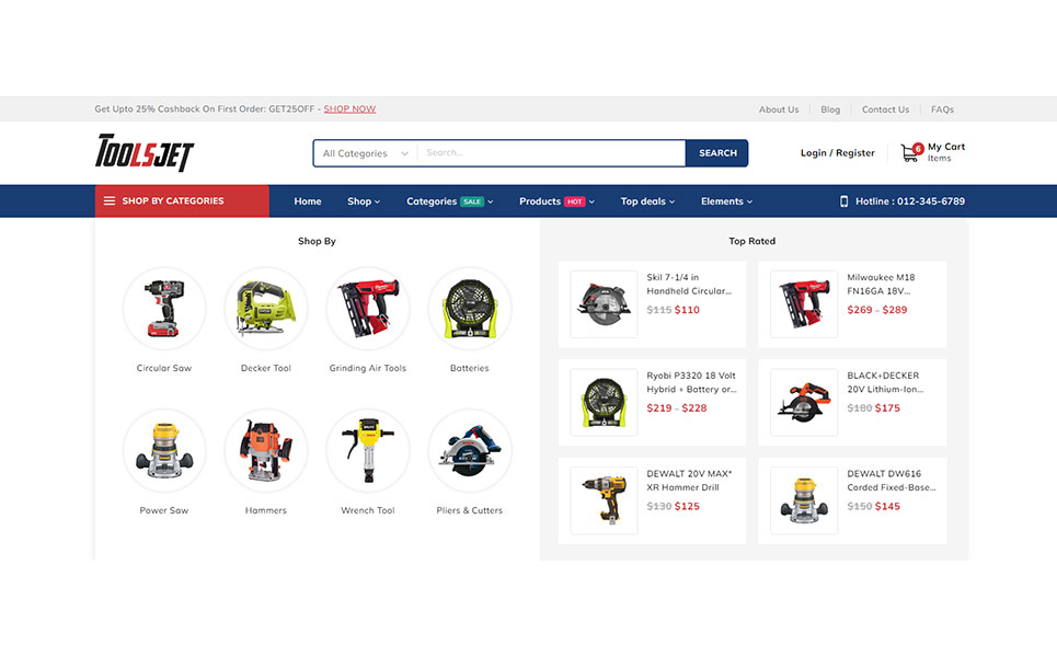 Elevate user engagement with Toolsjet's dynamic Ajax features. From quick product previews to instant cart updates, provide a seamless and enjoyable shopping journey that keeps your customers immersed and encourages exploration. Streamline the browsing experience with the Mega Menu feature which help you to organize your hardware and tools into easily navigable categories, allowing customers to find the items they need effortlessly and enhancing the overall user experience.