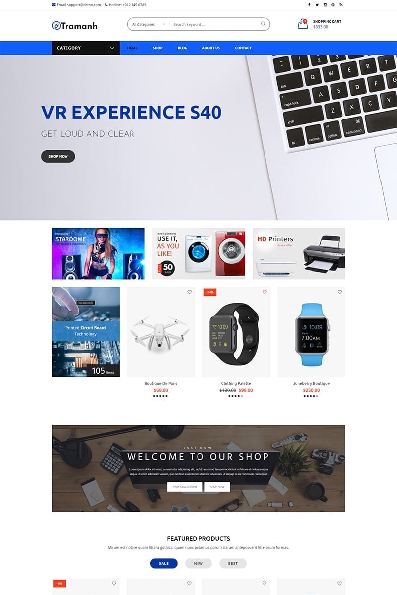 Tramanh is a beautiful and modern Woocommerce theme. It is responsive for mobile and supports Retina. Tramanh themes are suitable for any type of store such as electronics, laptops, computers, headsets, watches or any other type.