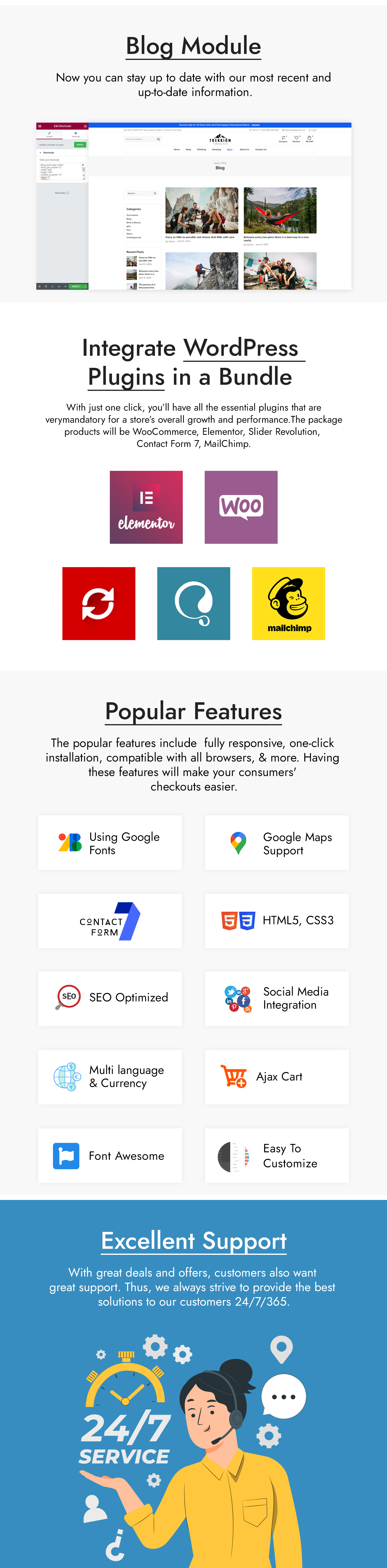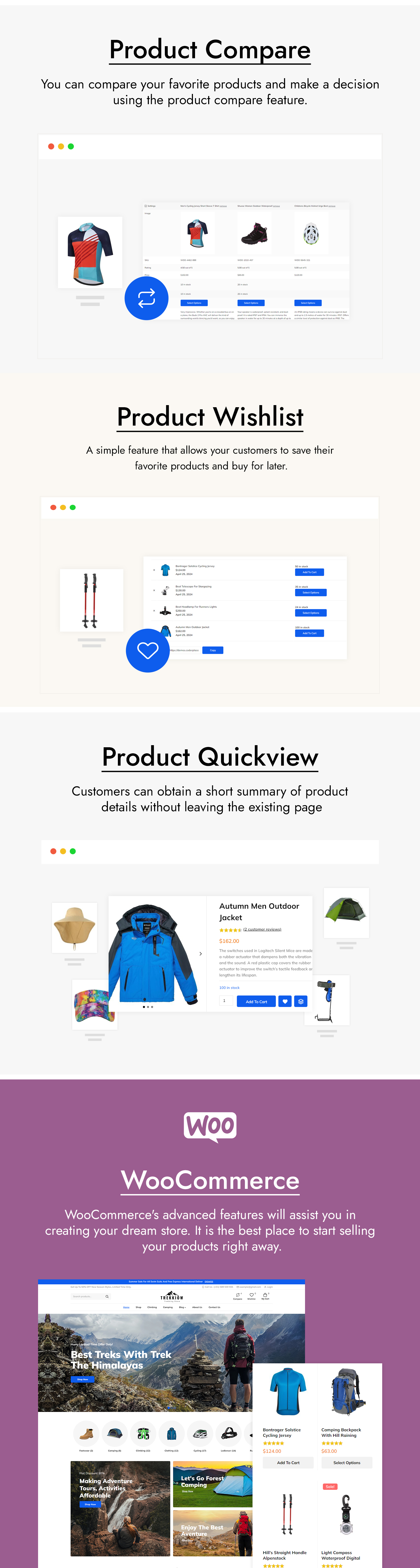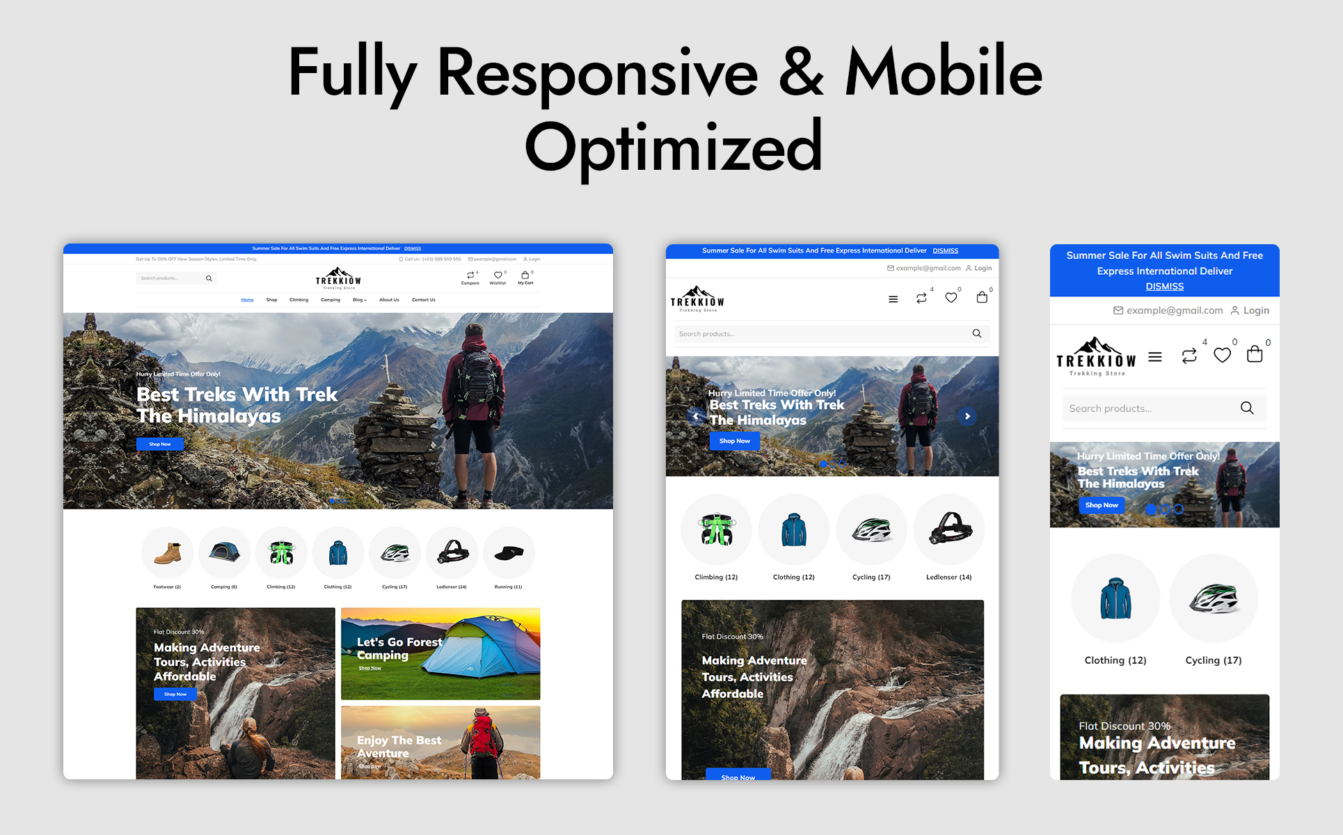 Apply our advanced Trekkiow WooCommerce Theme to revolutionize your outdoor storefront. Made with sports, hiking, camping, and trekking lovers in mind, this theme seamlessly integrates elegance with utility to increase your digital exposure. Its sturdy construction and user-friendly features let you to easily display your products, which can include anything from sports equipment to camping essentials and hiking gear. WooCommerce's processing of orders and inventory control tools make store operations easier. With so many personalization options, you can convey your business's spirit of adventure in a powerful manner. With responsive design, your customer base will have a perfect experience while discovering it simple to make purchases on any device they have. Increase sales and promote discovery with our Trekkiow - Hiking, Camping, Trekking & Sport Store WooCommerce Theme!