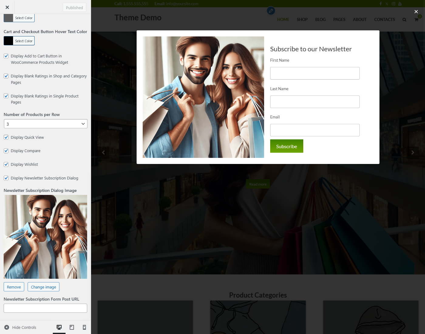 Stay connected with your customers and grow your mailing list with tStore's newsletter subscription popup form. Compatible with MailChimp, this feature allows you to capture email addresses and send targeted email campaigns to your subscribers. The subscription popup is designed to be unobtrusive yet effective, ensuring that you can engage with your audience without disrupting their shopping experience.