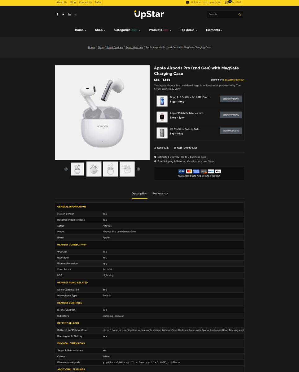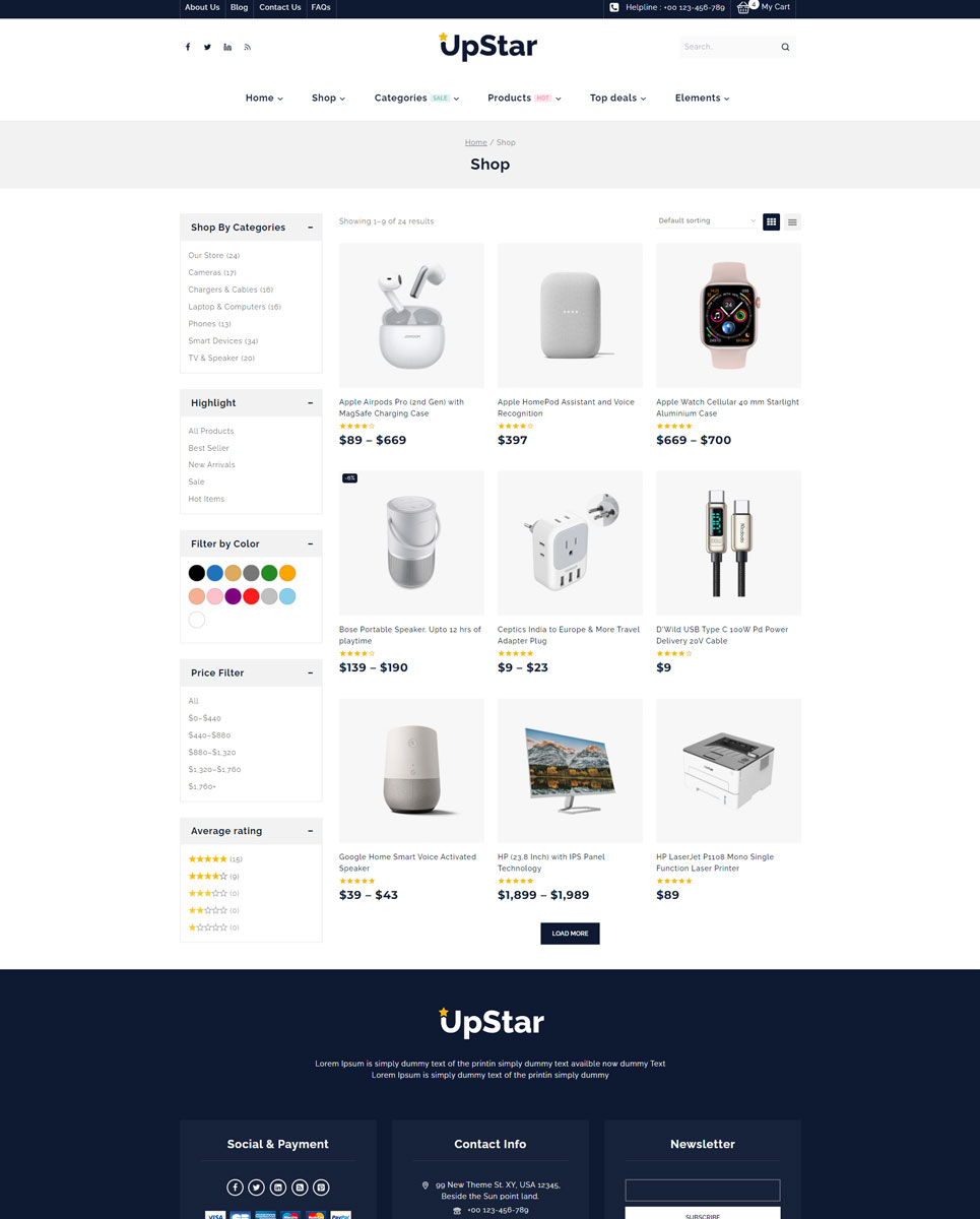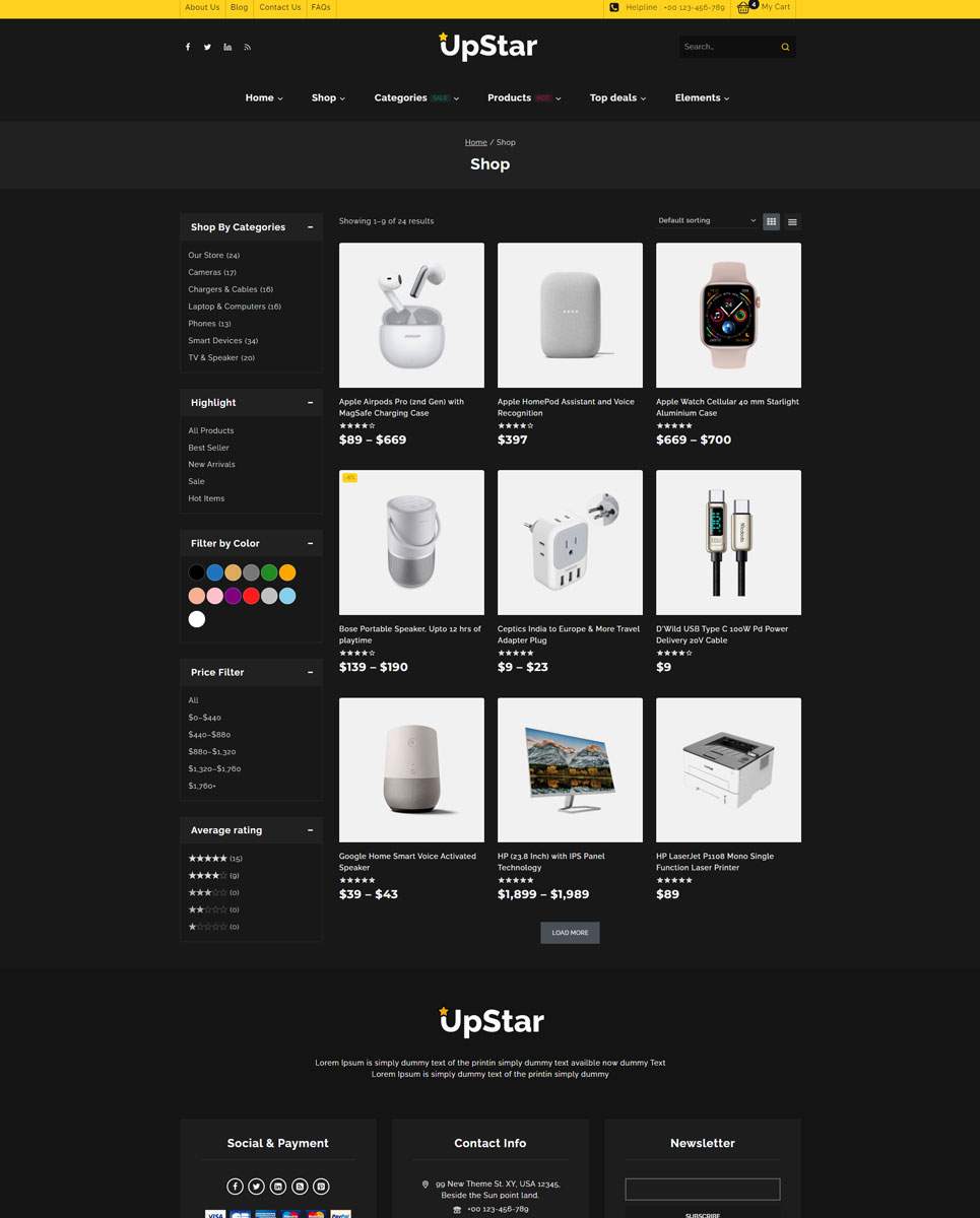 UpStar - Multipurpose Store Elementor WooCommerce Theme