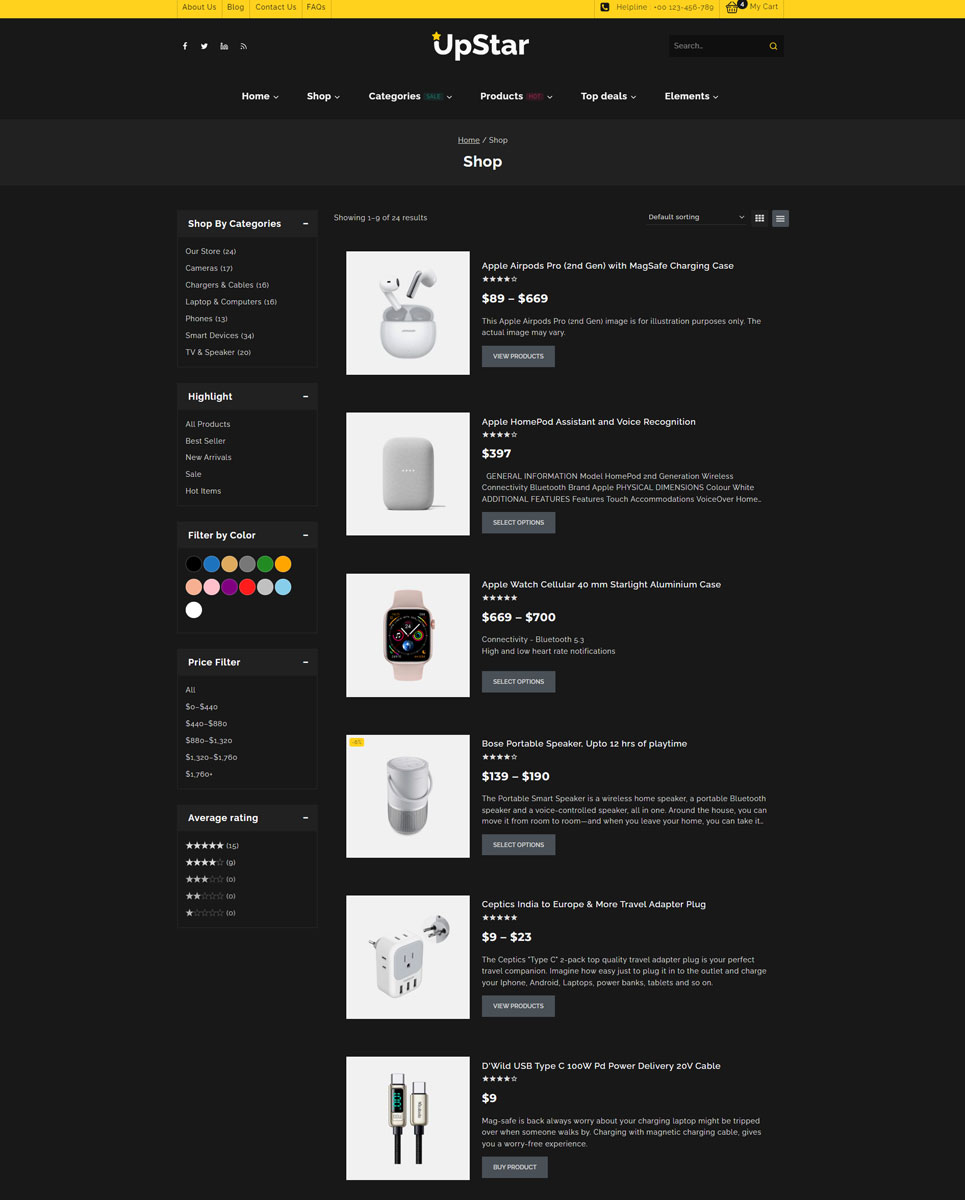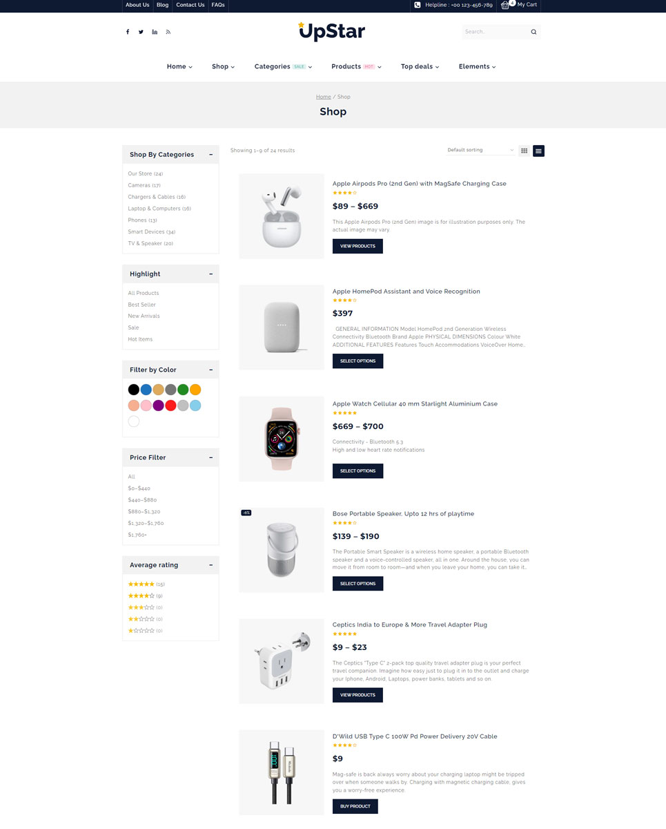 UpStar is a versatile and modern WooCommerce theme designed for any type of online store, including fashion, electronics, furniture, beauty, and more. With its clean design, seamless performance, and advanced customization options, UpStar helps you create a professional eCommerce website effortlessly. Whether you’re a startup, a growing brand, or an established retailer, this theme provides all the tools needed to sell products online effectively.