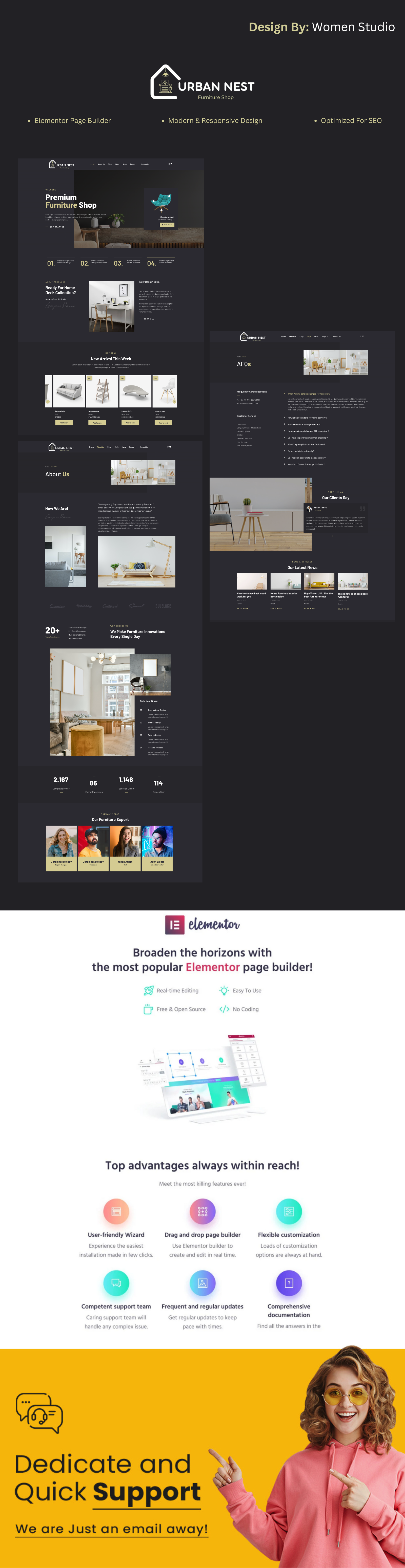 Urban Nest is a stylish and fully responsive WooCommerce theme built on the Elementor page builder, crafted specifically for modern furniture stores, home decor boutiques, and interior design service providers. With its clean aesthetic and intuitive layout, Urban Nest creates a smooth and visually rich shopping experience that elegantly highlights your furniture collections and services. The theme integrates seamlessly with WooCommerce for easy product management and checkout, while Elementor allows real-time, drag-and-drop customization without any coding. Ideal for businesses looking to showcase furniture, decor, and professional interior design services, Urban Nest combines function with sophistication to help you create a standout online presence.