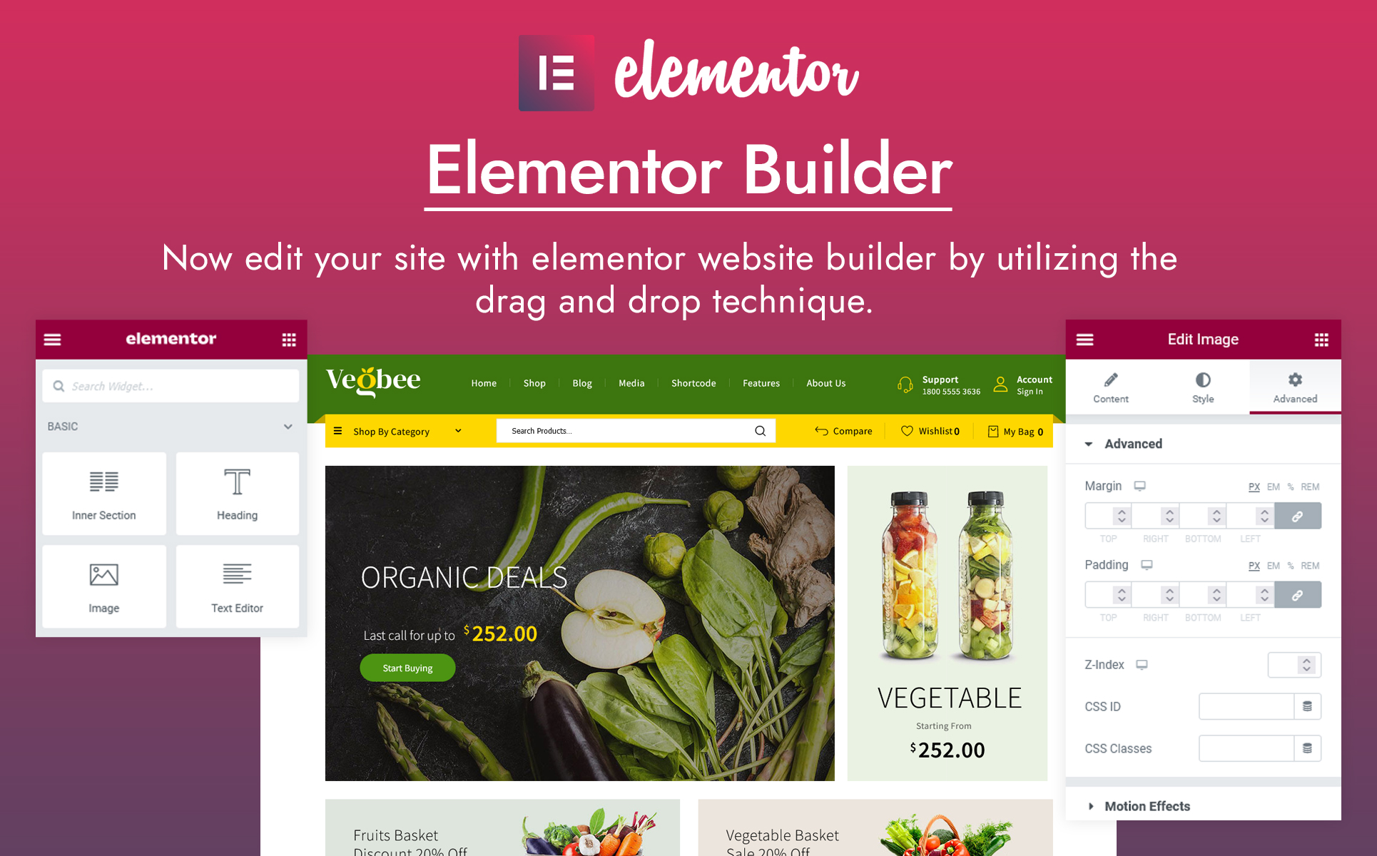 Powered by Elementor, the leading drag-and-drop page builder, Vegbee allows you to customize your store with ease. You can build and modify pages in real-time, seeing changes instantly — no coding required! From homepage layouts to product pages and blog sections, everything is fully editable to match your brand’s style.