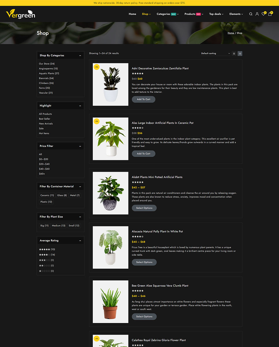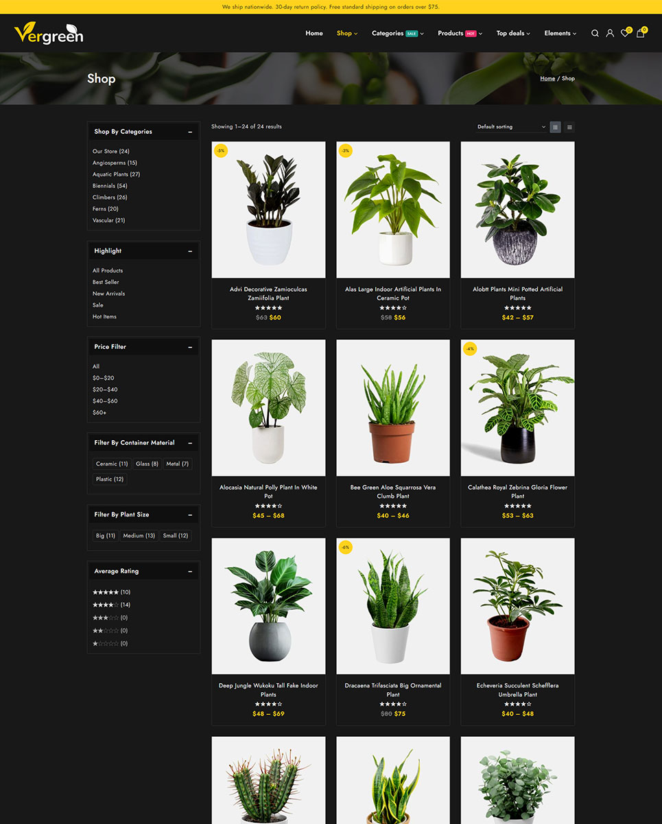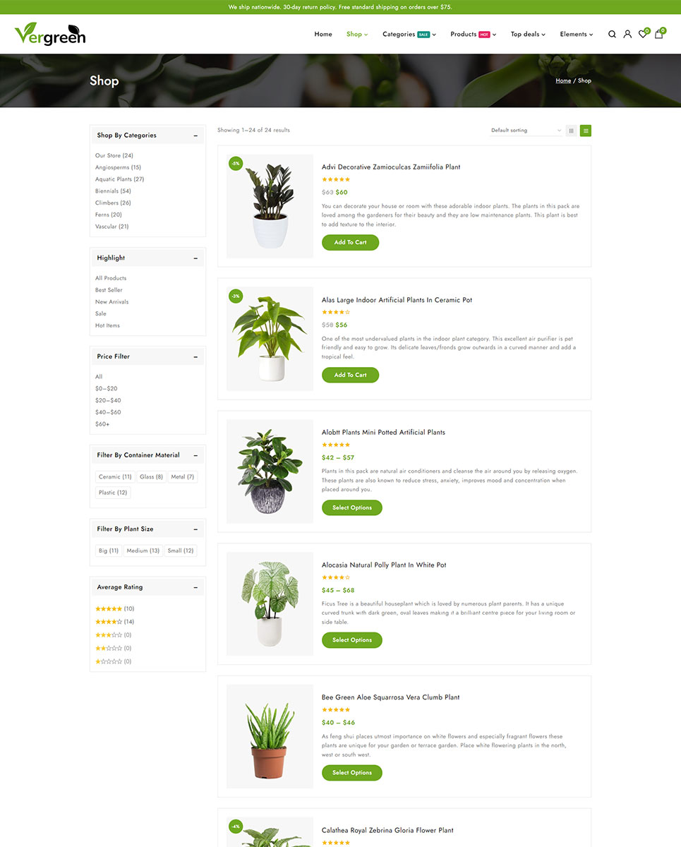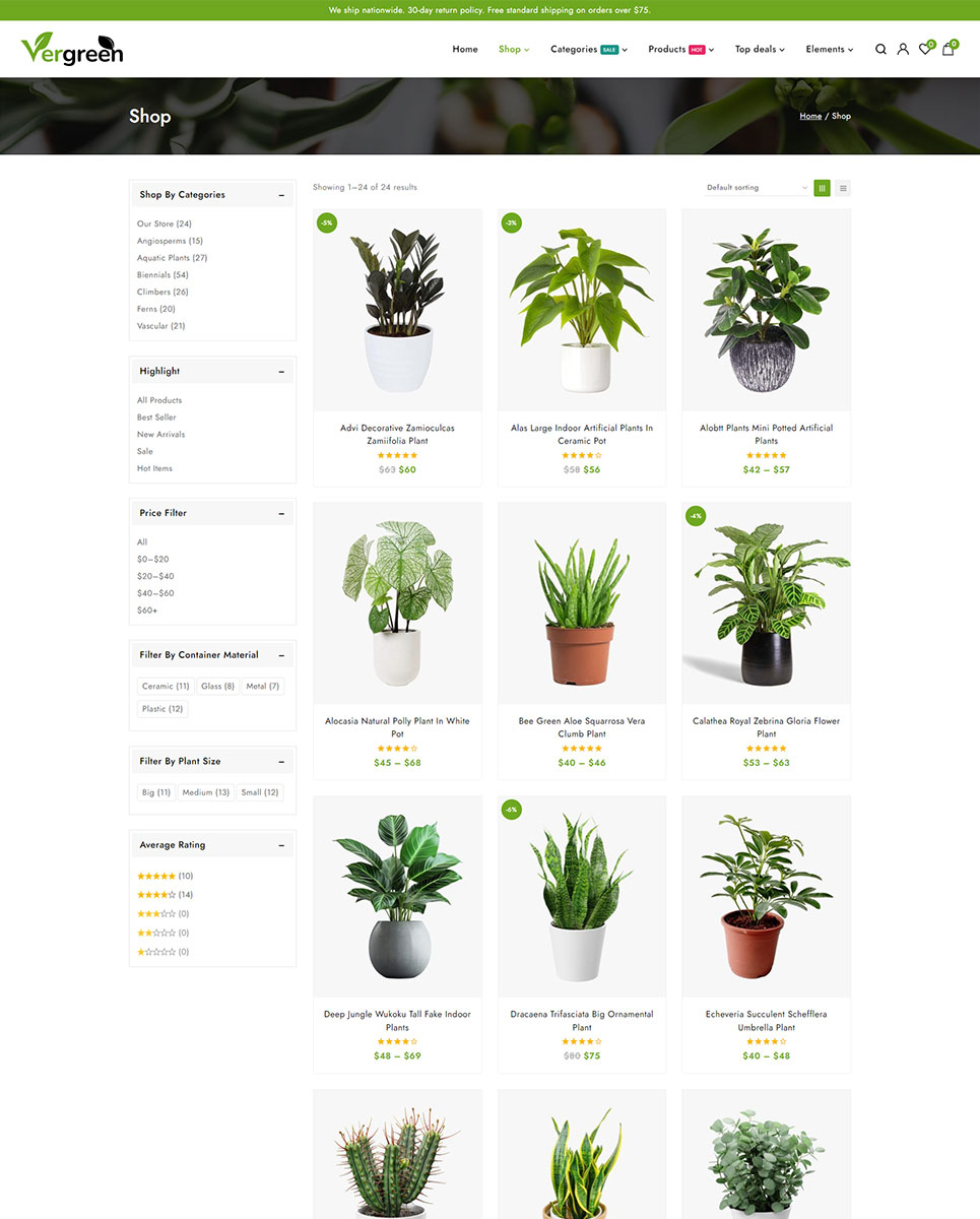 Vergreen - Plant & Nursery Store Elementor WooCommerce Responsive Theme WooCommerce Theme