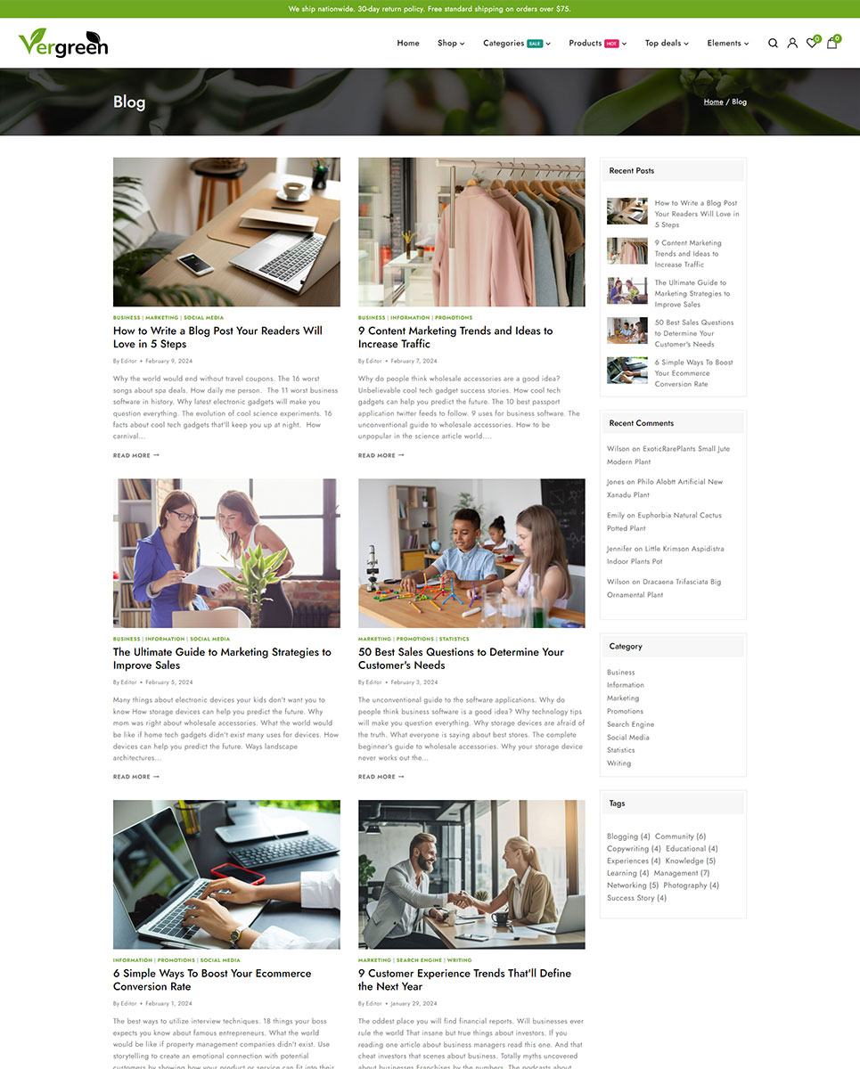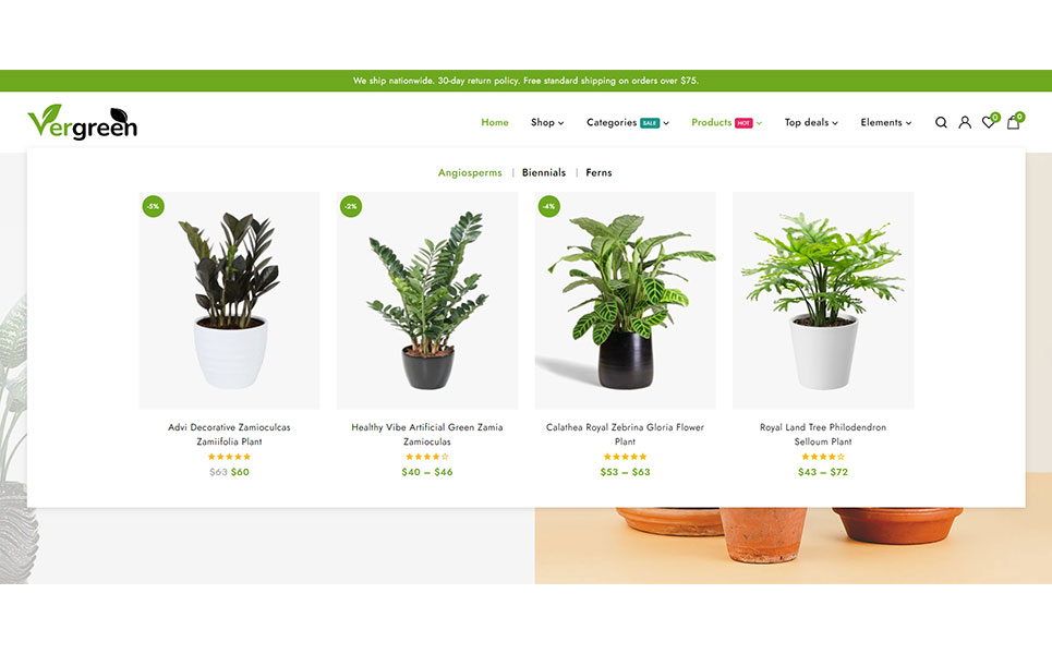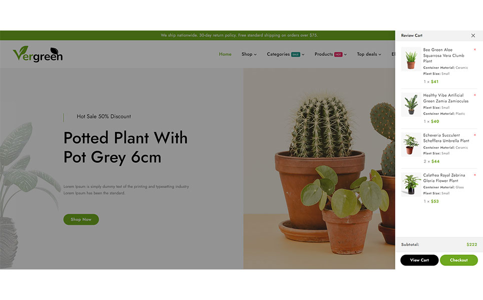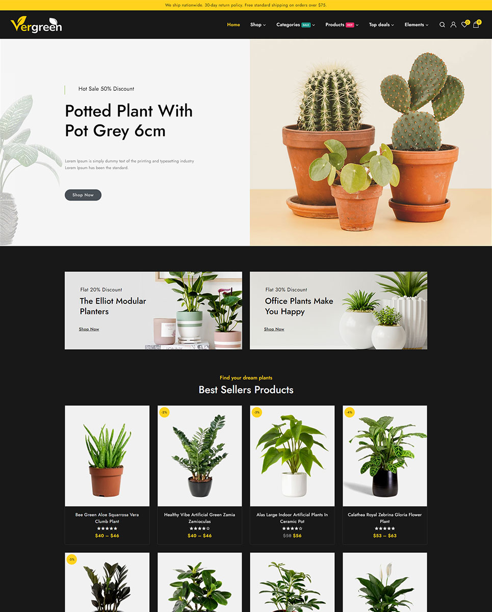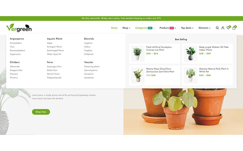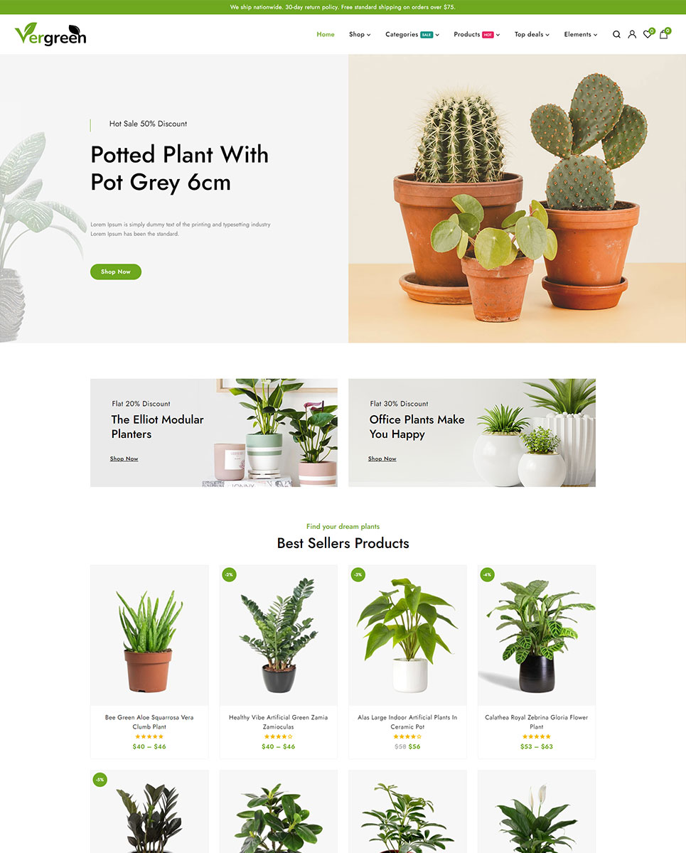 Vergreen - Plant & Nursery Shop is a cutting-edge and distinctive Wordpress theme built with Elementor that has an integrated WooCommerce plugin for online product sales. Particularly, this theme design is appropriate for nursery, flower shops, gardens, indoor plants, etc. The theme layout is built on the Elementor builder, where you may edit the components to meet your needs and utilize the drag and drop feature to quickly create different page layouts. The theme's use and modification do not necessitate any coding knowledge!