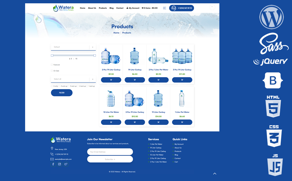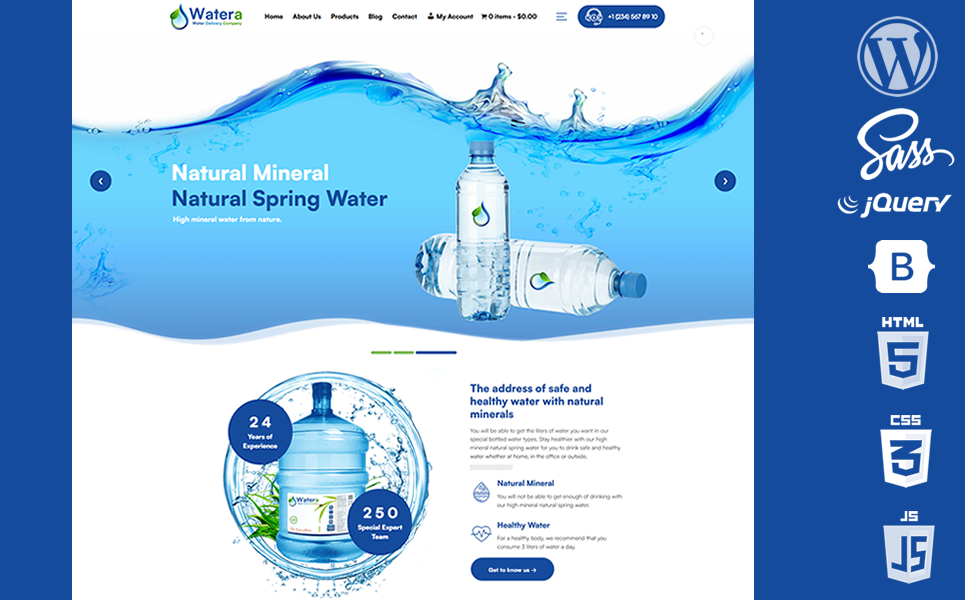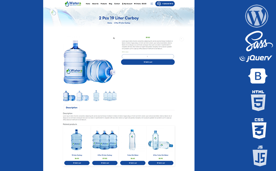 Watera WooCommerce WordPress Theme is WooCommerce WordPress theme coded with exclusive cutting edge technologies designed for Water Sale, Water Delivery Company, Water Transport Service, Water Supply and All Water Vendors.