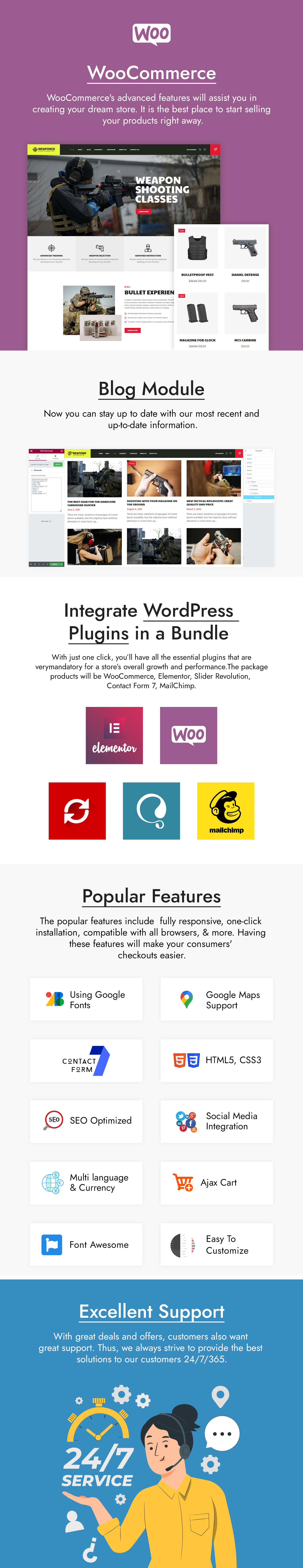 Consider Weaponce if you own a gun store or other form of weapon retail business. When you have a huge quantity of display space, you are able to showcase a greater number of products that are available for purchase by your clients. Furthermore, the main menu's adaptability and malleability make it simple to categorize and connect to product galleries complete with high-resolution imagery. You may use a wide variety of sliders to represent several classes of weapons. The installation of this theme will just take a few minutes and will greatly improve your efficiency. When your website is not only attractive to the eye but also well-coded, your visitors will have a fantastic experience when using your site.