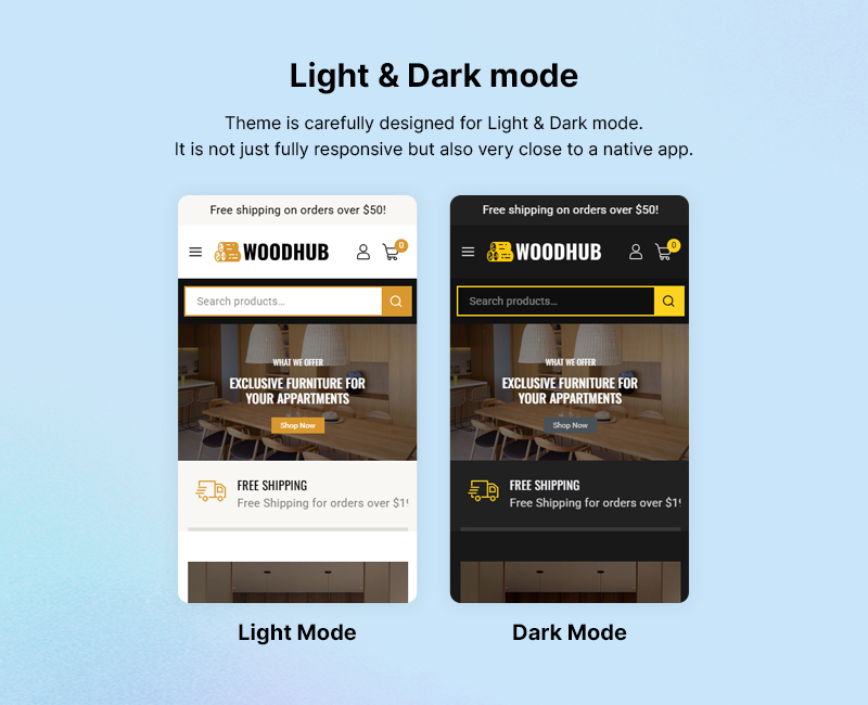 Upgrade your furniture or woodcraft business with WoodHub and deliver a shopping experience your customers will love. Perfectly tailored for artisans, carpenters, and retailers, this theme is your key to a professional and thriving online store!