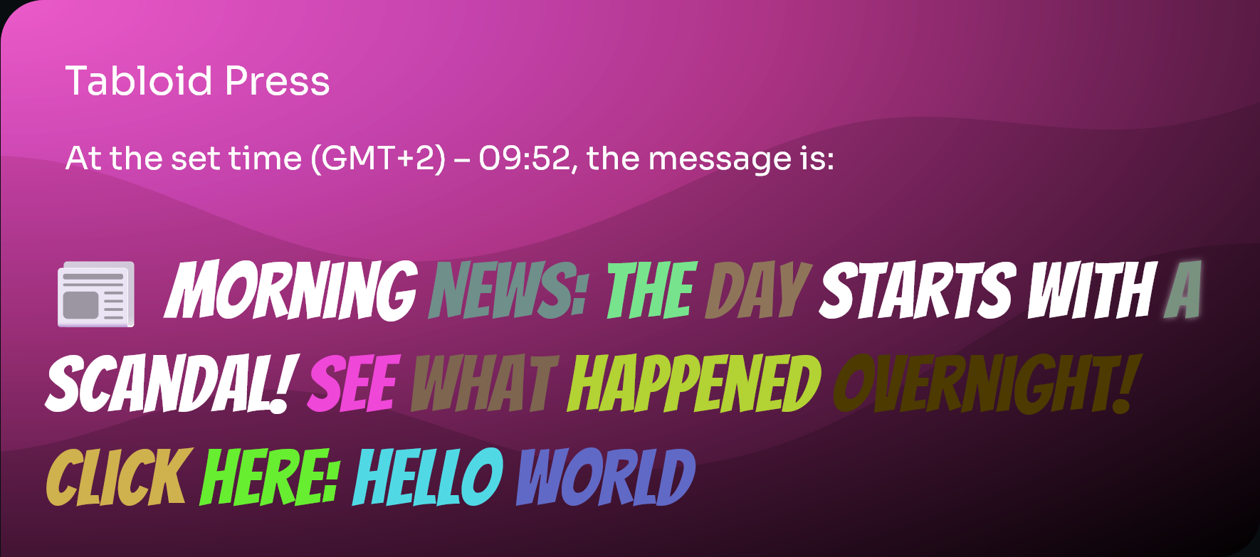 Additionally, you can include one of the available shortcodes in your messages and enhance their appearance using various animation effects. Each animated message can have a clickable link, making it perfect for call-to-action buttons.