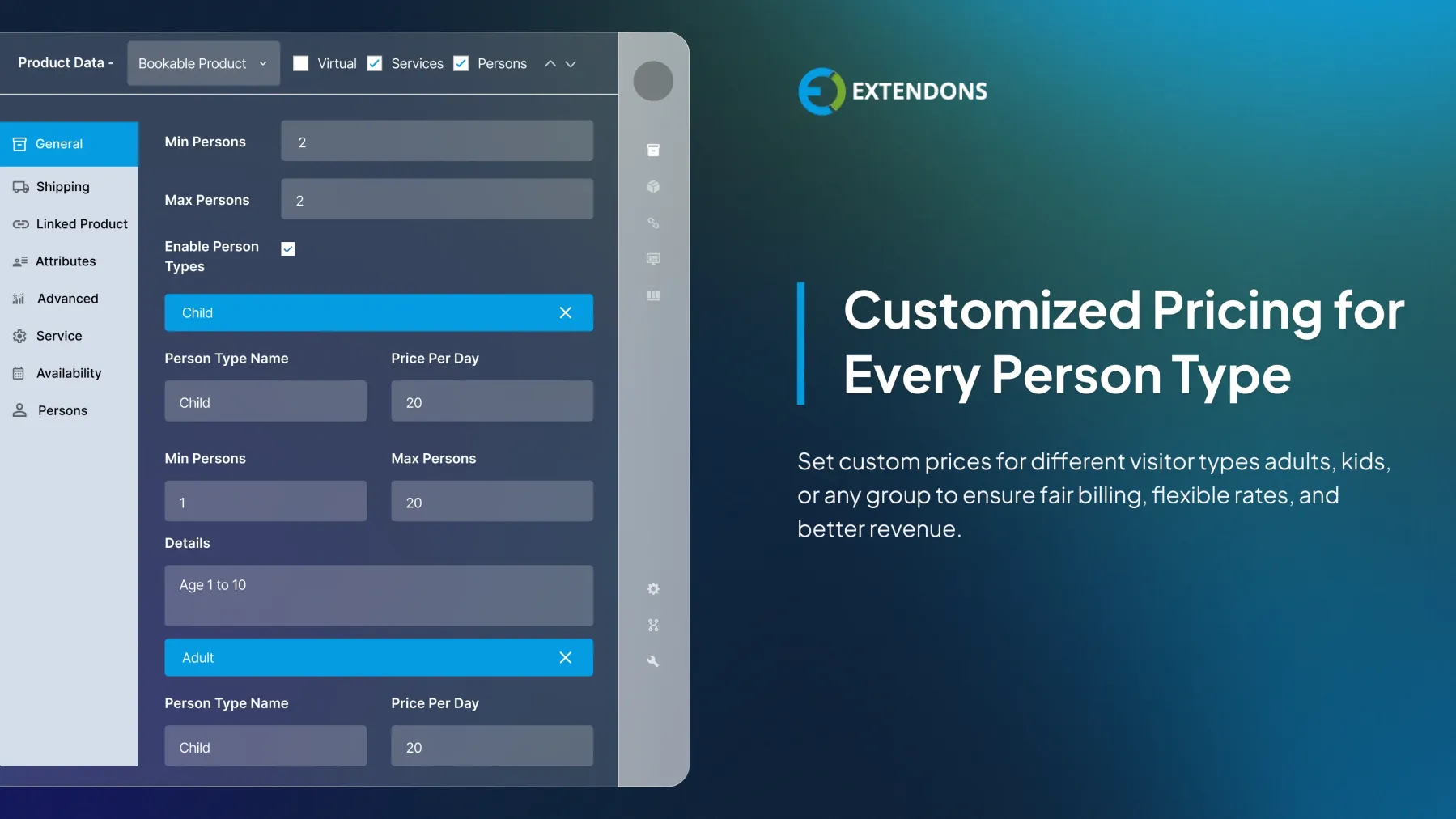 The plugin allows you to apply dynamic pricing based on customer type, such as adults or children. You can set different price ranges for various room categories or charge per time slot to match your business model.