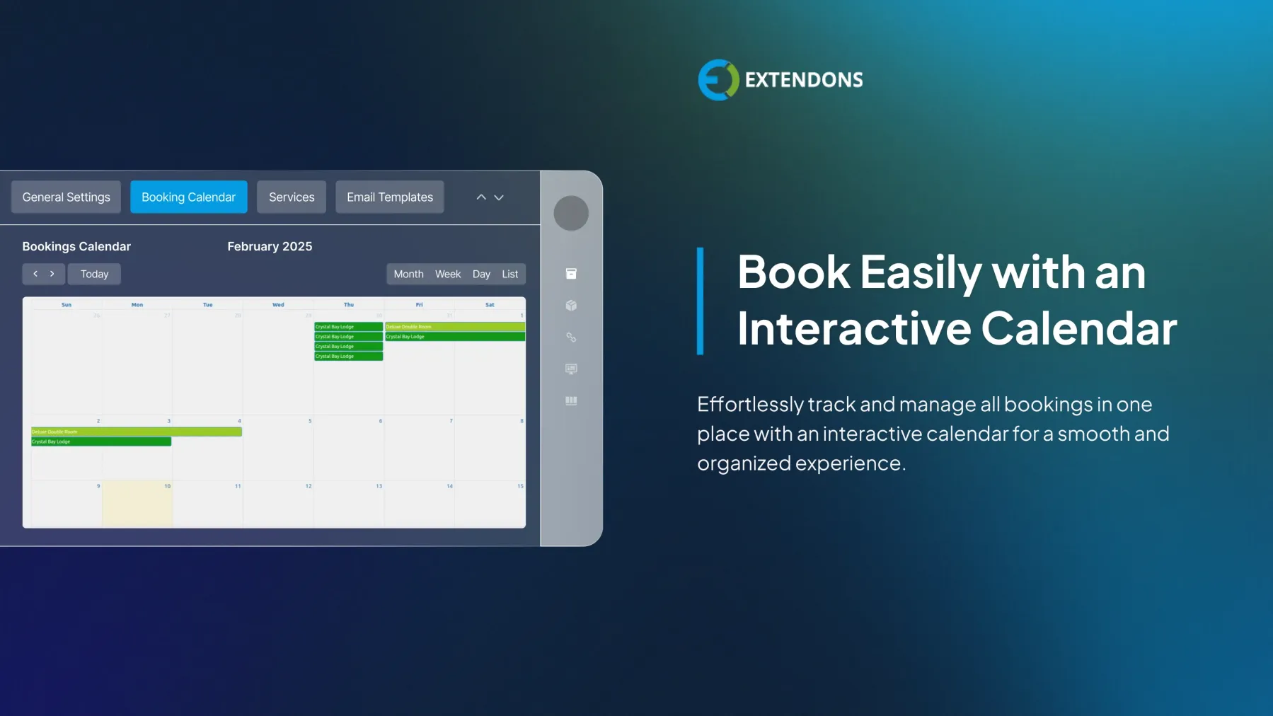 You can block specific days when bookings are not available to prevent overbooking. The interactive calendar allows you to view, update, and manage all bookings from one central place.