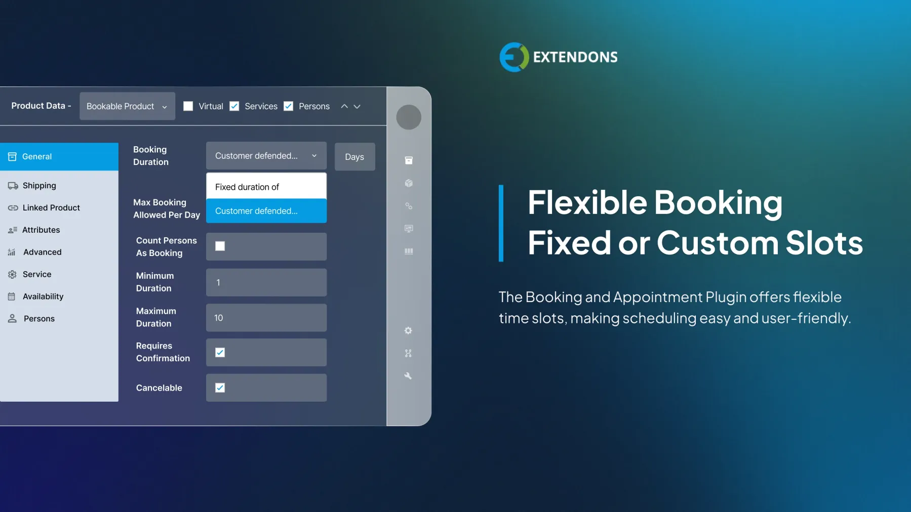 You can offer both predefined and custom time slots so customers can choose the booking duration that works best for them. This flexibility ensures your services can accommodate different schedules and needs without adding extra complexity.