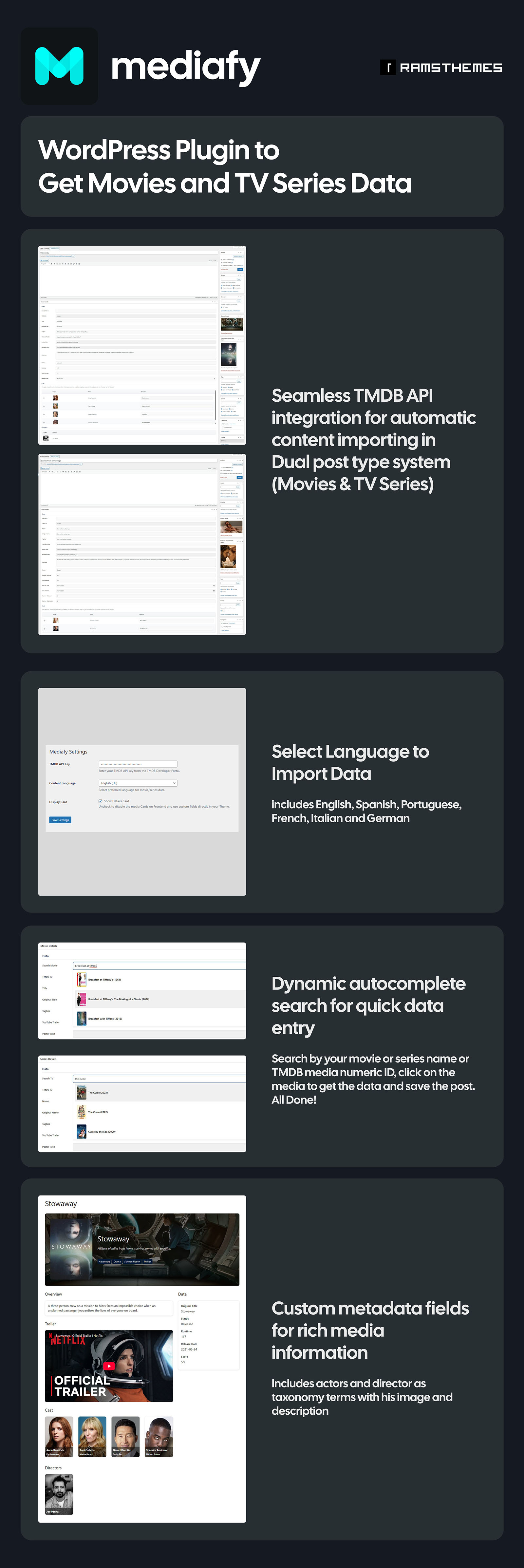 MEDIAFY - Get Movie and Series Data with TMDB API WordPress Plugin