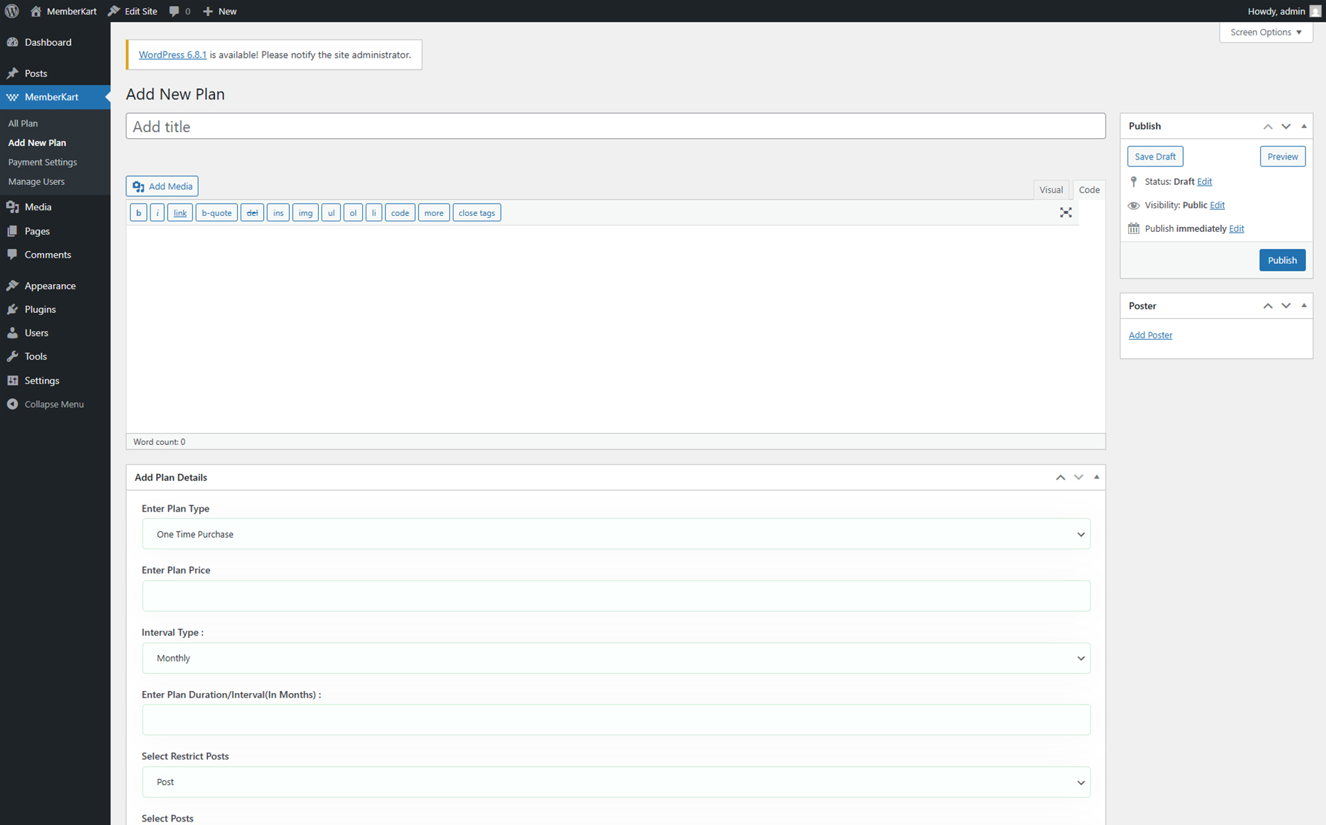 Member Kart is a robust and user-friendly WordPress plugin made to assist agencies, companies, and creators in creating profitable membership websites. Member Kart provides all the tools you need to monetise your website and provide your audience with unique experiences, including plan development, gated content, secure payment connection, and user management. Whether you're launching a subscription service, a private community, or a premium content platform, Member Kart makes it simple, scalable, and seamless.