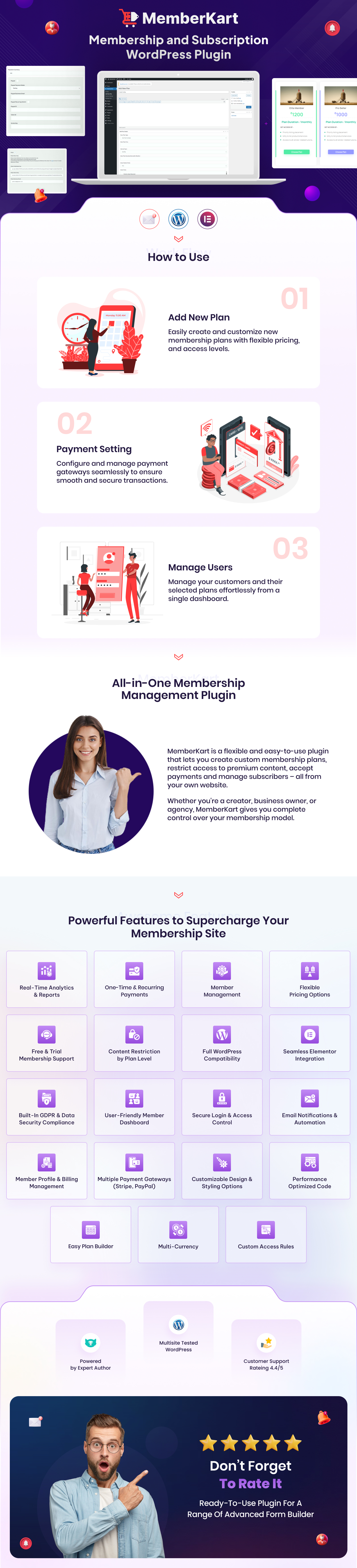 Member Kart combines powerful features with a straightforward design, making it the right solution for anyone wishing to establish, maintain, and develop a membership-driven website. Member Kart provides you with the resources you need to be successful, regardless of how big or little your business is, without requiring costly add-ons or intricate settings.