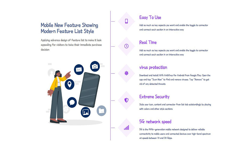 Upgrade your website's presentation with the Modern Feature List WordPress Plugin for Elementor. This powerful plugin enables you to create visually stunning and highly customizable feature lists, perfect for showcasing your products or services. Seamlessly integrated with Elementor, it offers drag-and-drop functionality, extensive design options, and responsive layouts to ensure your lists look great on any device. Highlight key features with icons, images, and engaging descriptions to captivate your audience. Ideal for businesses, portfolios, and eCommerce sites aiming to enhance their content and boost user engagement.