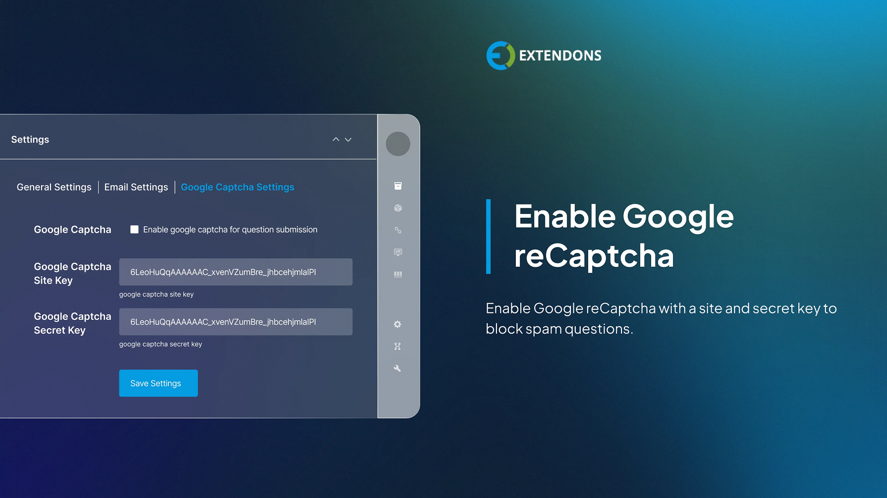 Enable reCaptcha to block spam or unwanted submissions. Setup is simple with the site and secret key.