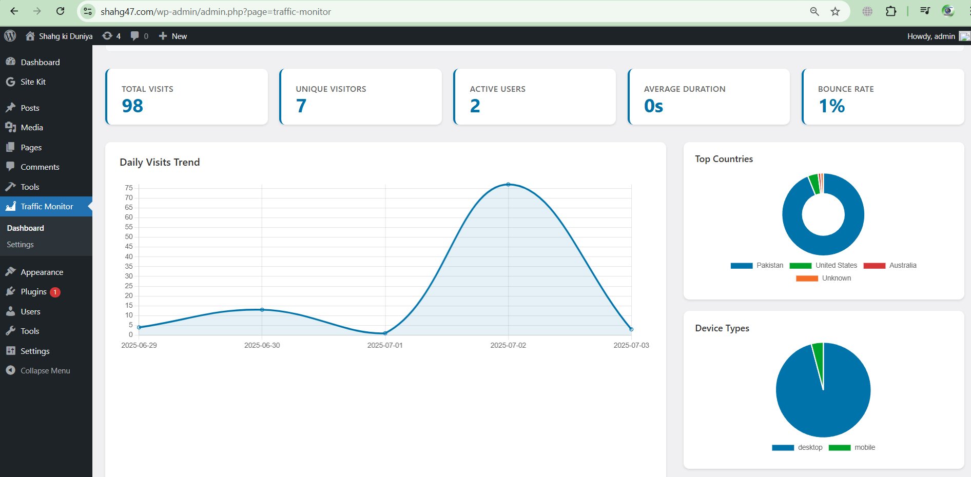 - Traffic Source Tracking: See where visitors come from (Google, Facebook, etc.)