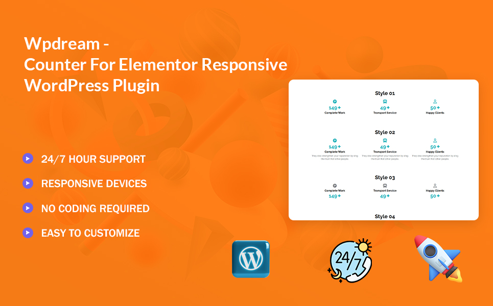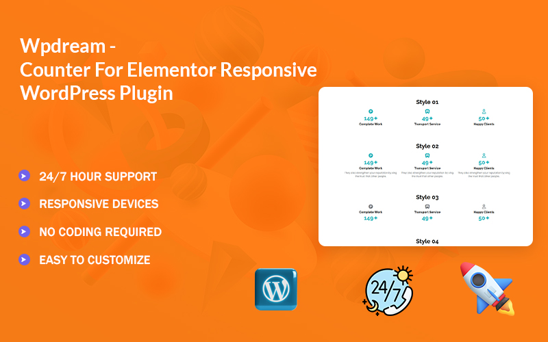 Wpdream Counter for Elementor WordPress Plugin. This powerful tool allows you to effortlessly add dynamic counters to your pages, showcasing statistics, milestones, or any numerical data in a visually appealing manner. With customizable designs and animations, you can create engaging content that captures your audience's attention and drives interaction. The Wpdream Counter is user-friendly, making it suitable for both beginners and experienced developers. Seamlessly integrate it into your Elementor layouts and enjoy a range of features, including responsive design and easy customization options. Elevate your website's aesthetic and functionality today with this essential plugin, designed to help you communicate your achievements and data effectively.