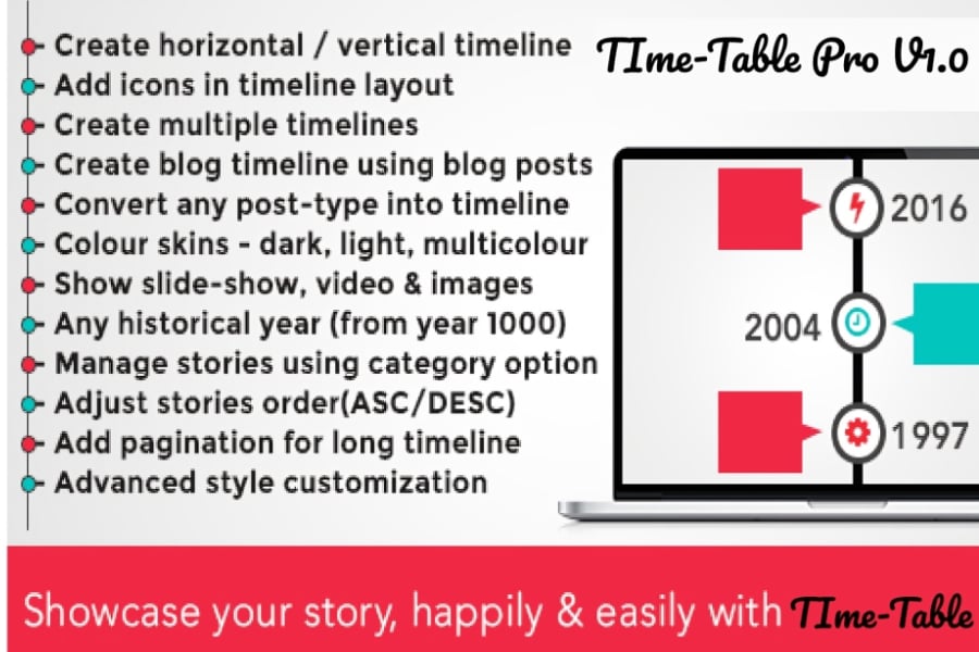 Create Multiple Timeline Stories – Create unlimited timeline stories inside your WordPress website or blog.