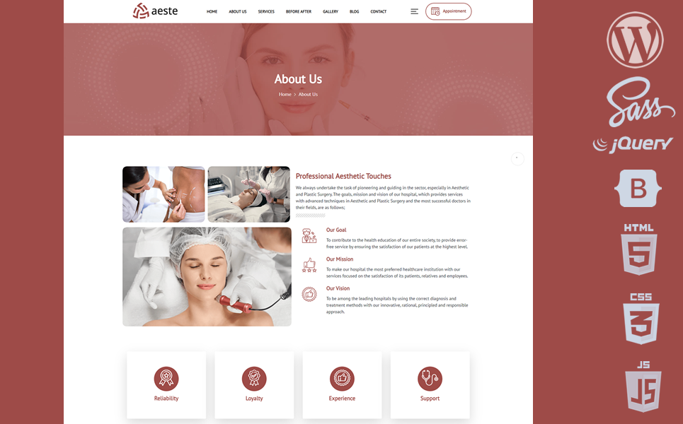 Aeste Aesthetics and Plastic Surgery WordPress theme offers you clarity, modernity, elegance and advanced features.