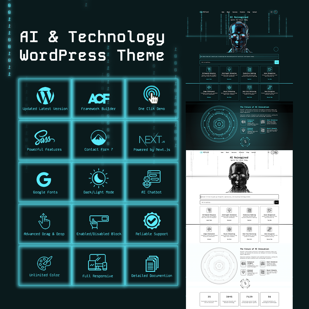 AIfind is not just another WordPress theme; it is a game-changer for businesses, developers, and creators who want to harness the power of AI, cutting-edge design, and maximum functionality in one seamless package. Designed with the future in mind, AIfind is the ultimate solution for AI-powered websites, tech platforms, blogs, and corporate businesses looking to create a professional, interactive, and modern online presence.