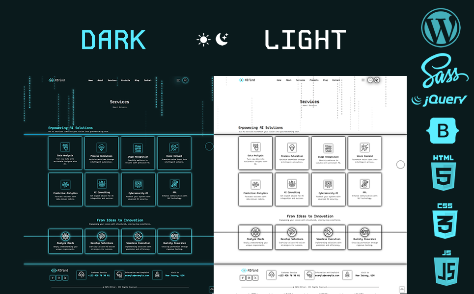 AIfind goes beyond just offering a static design; it adapts to the needs of your visitors. The Dark and Light Mode Toggle allows users to switch between two stunning, fully responsive themes with smooth transitions.