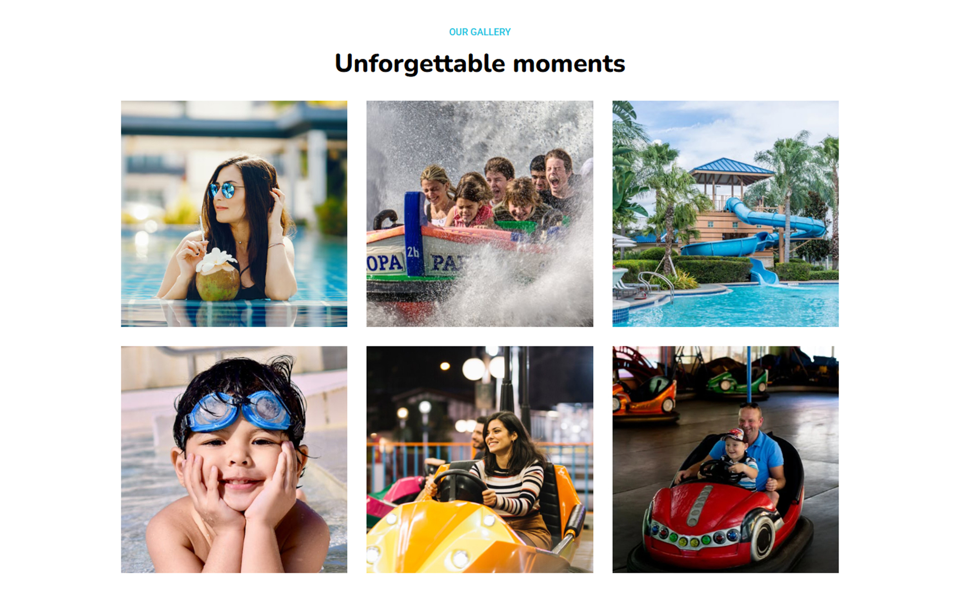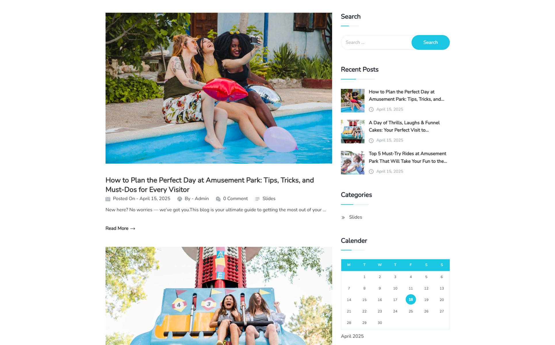 Bright & Playful Design : Packed with bold colors, custom icons, and dynamic animations that capture the energy of a real amusement park, this theme is perfect for attracting families and thrill-seekers alike.