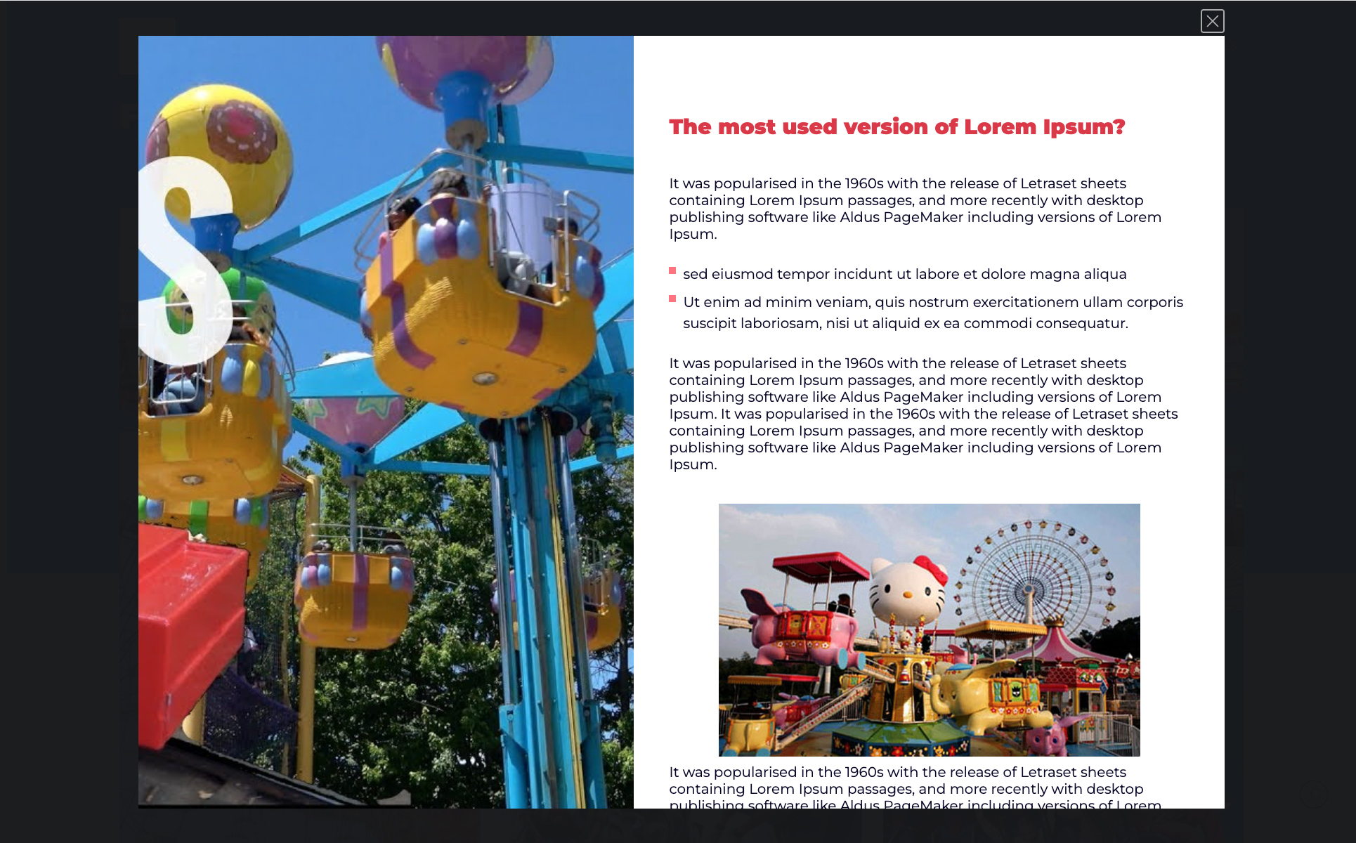 With more than 10 independent blocks, the Amusement Template can be mixed to create an infinite unique and flexible web pages.