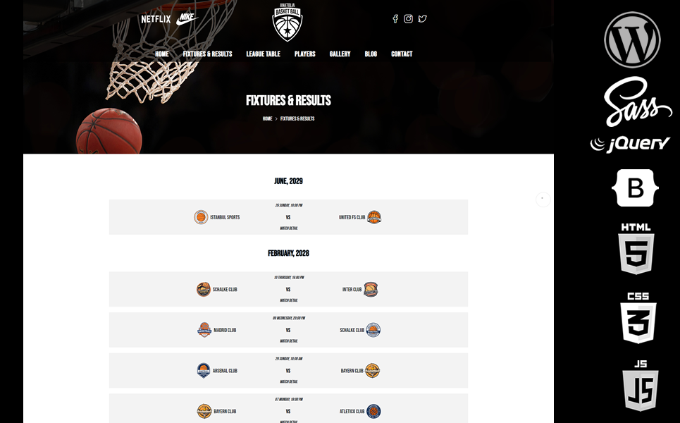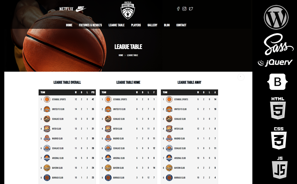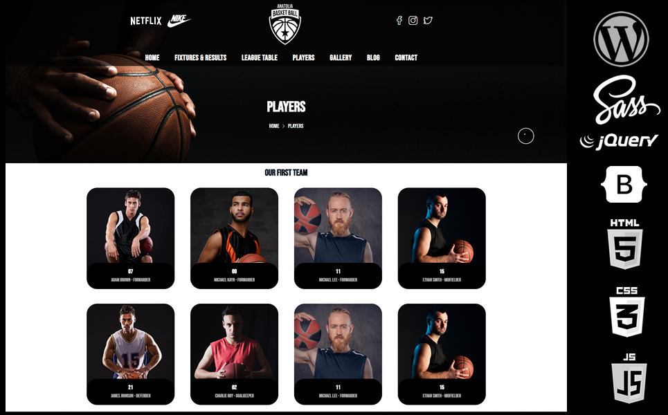 Anatolia Basketball Club WordPress Theme is a modern and new generation cutting-edge WordPress theme carefully coded for Basketball Club, Basketball Matches, Basketball Tournaments, Basketball Players, Sports, Sports Club and All Sports.