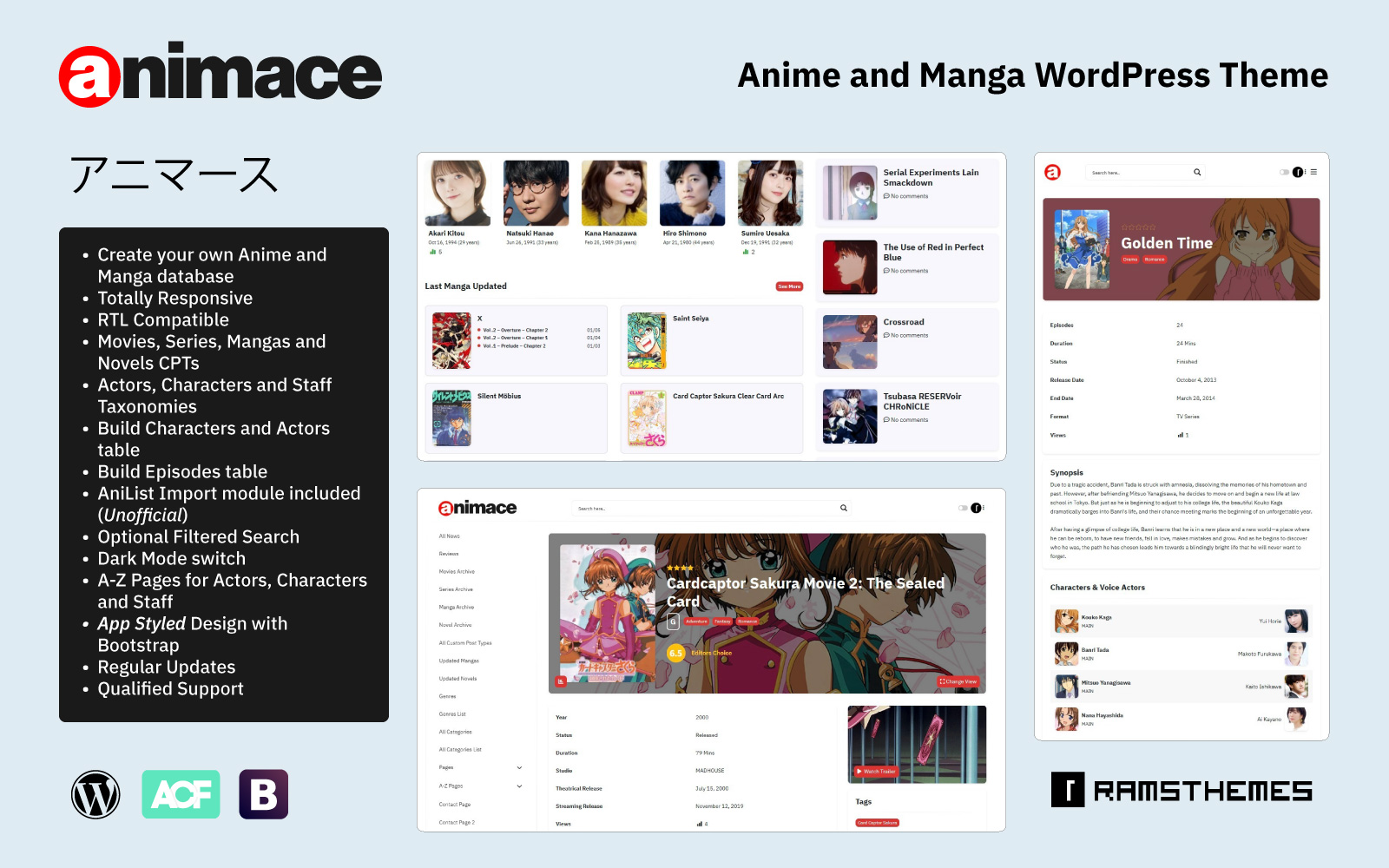 ANIMACE combines the best of two proven RAMSTHEMES products — INGMAR and ANIMAG — into a new powerhouse designed for anime and manga content. Built with Bootstrap 4 and ACF Pro, it’s fast, mobile-friendly, and styled with a clean “app-like” frontend that feels immersive on every device.