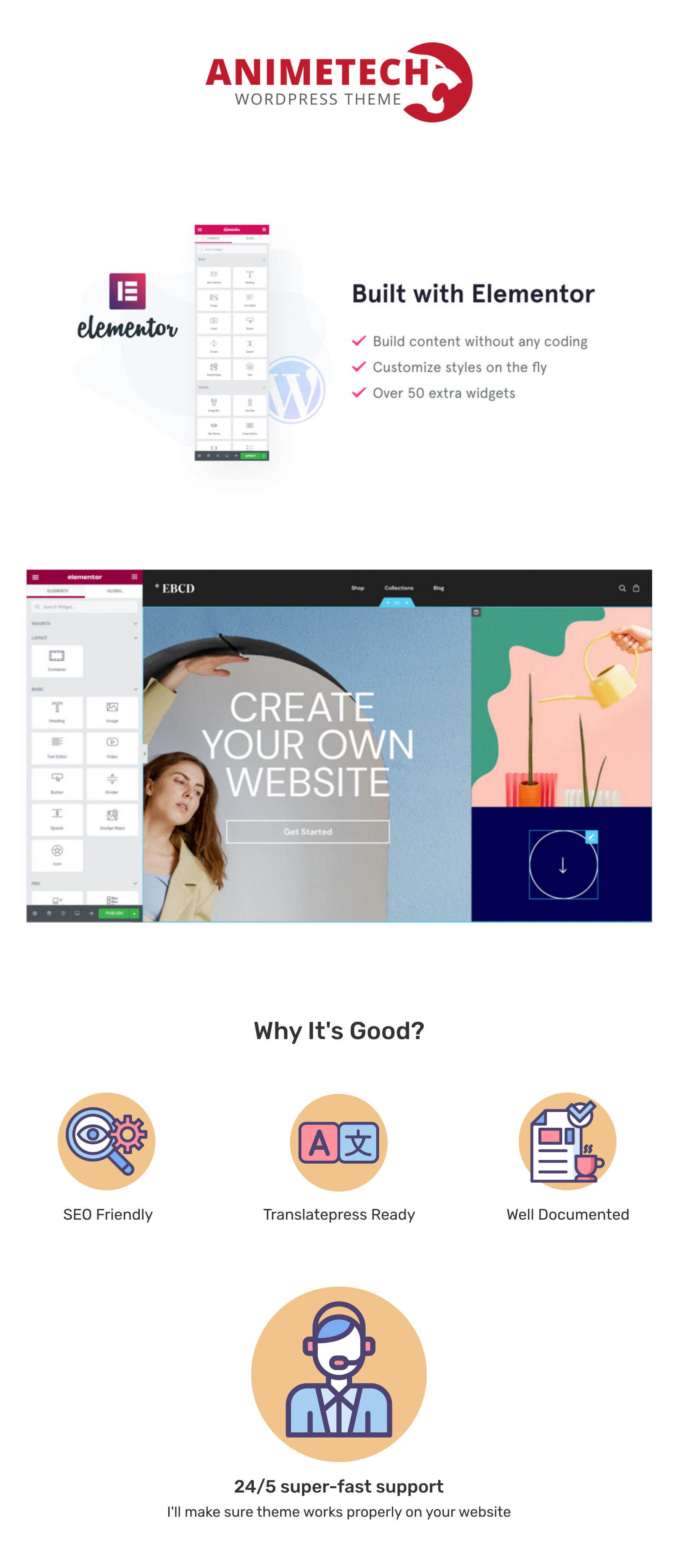 The template includes ready made designs, integrated post types, and edit friendly Elementor page builder integration. Mobile friendly and search engine optimized, Anime Tech helps your content be aesthetically appealing within all screens.
