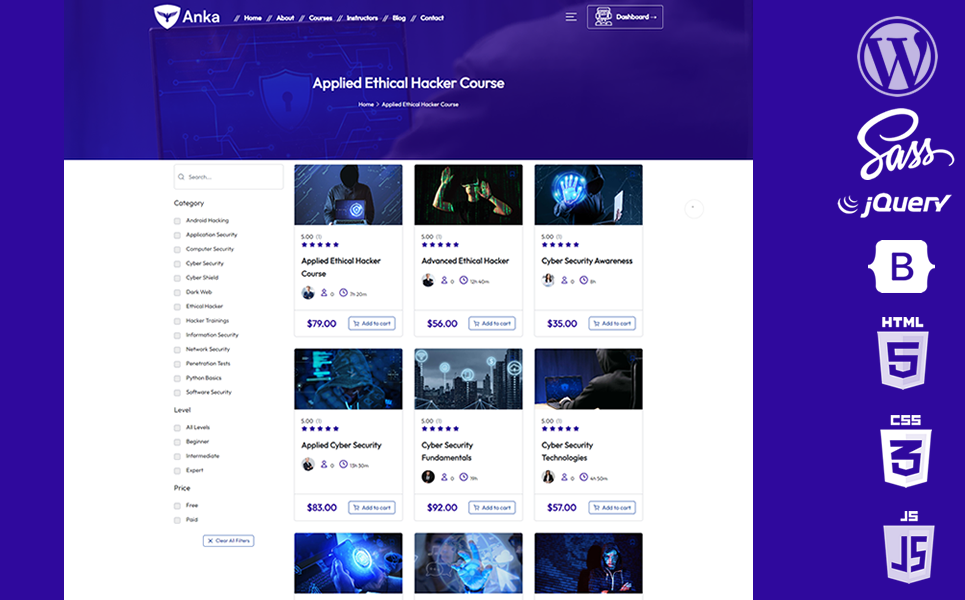 Anka Cyber Security WooCommerce WordPress Theme has been developed for software companies that want to provide quality cybersecurity trainings and services.