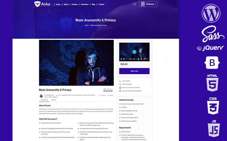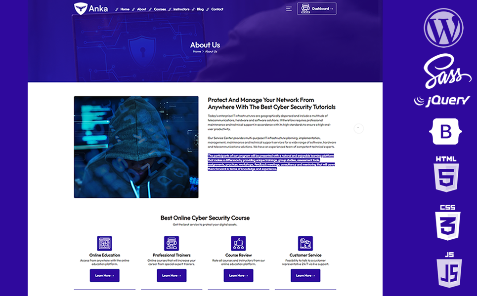 Anka will be able to create a superior education system with the Cyber Security theme. You will be able to offer online video tutorials, quizzes and tests.