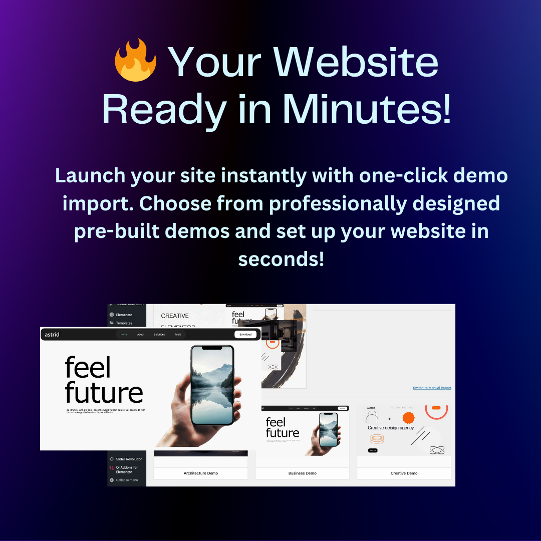 - One-Click Demo Import – Get started fast by importing ready-made demo content.