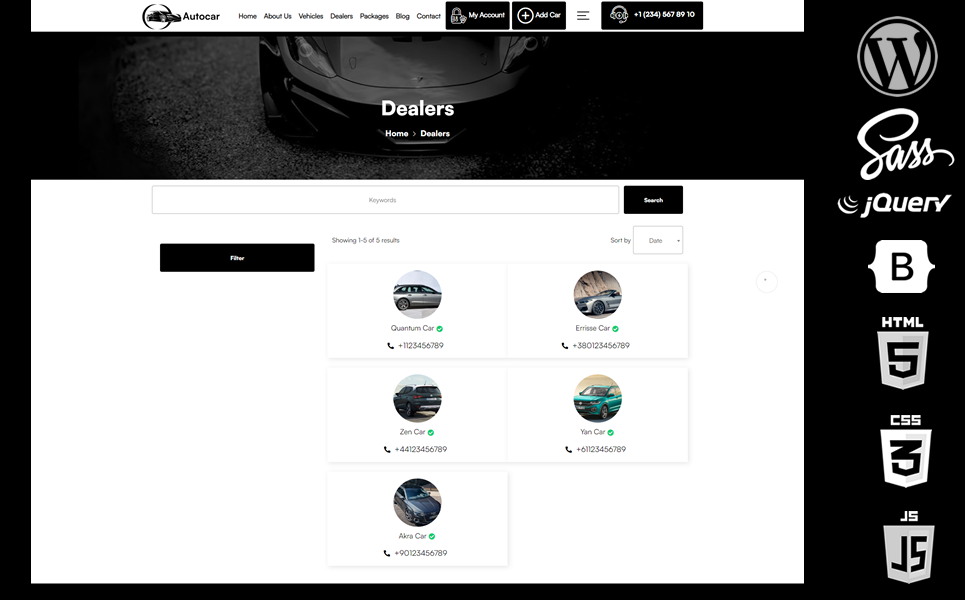 On the Dealers page, there will be phone numbers and biographies of all vehicle dealers, and your visitors will be able to search for dealers with a special filtering field. With the Autocar WordPress template, you will become a Professional vehicle dealer and trading company.