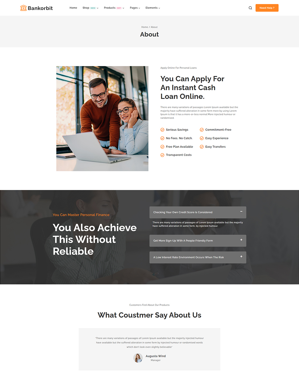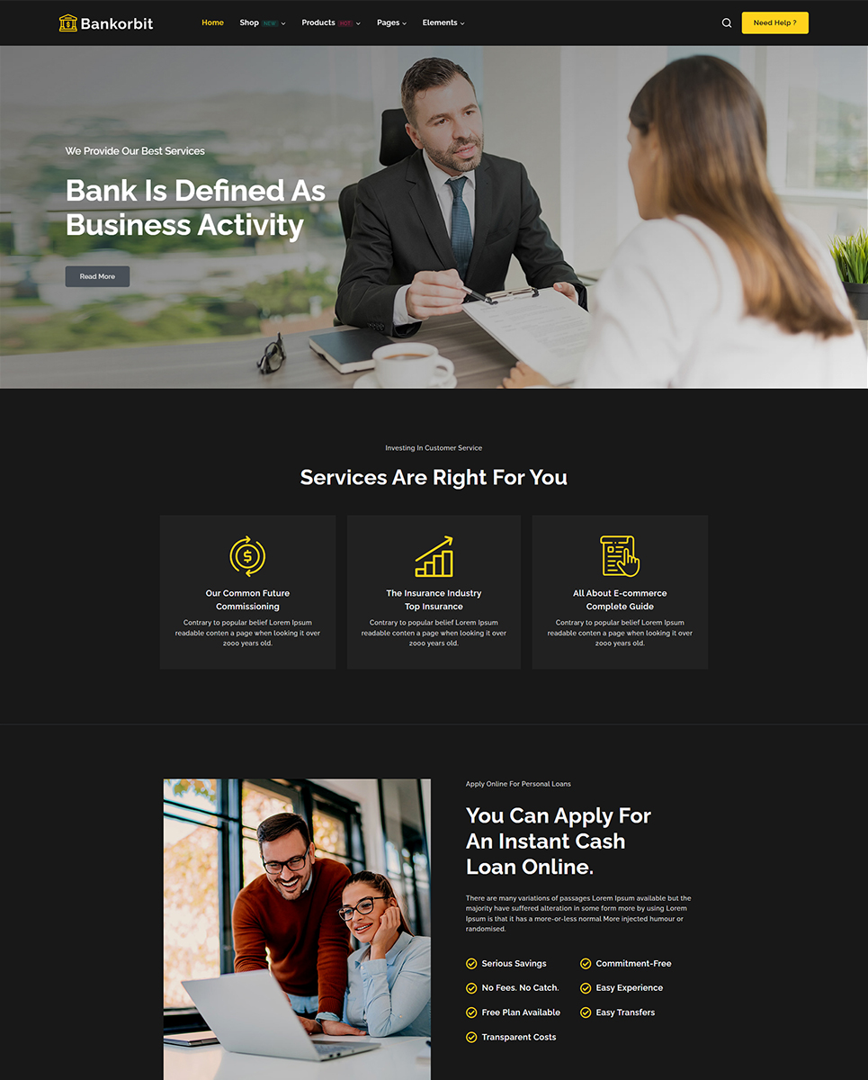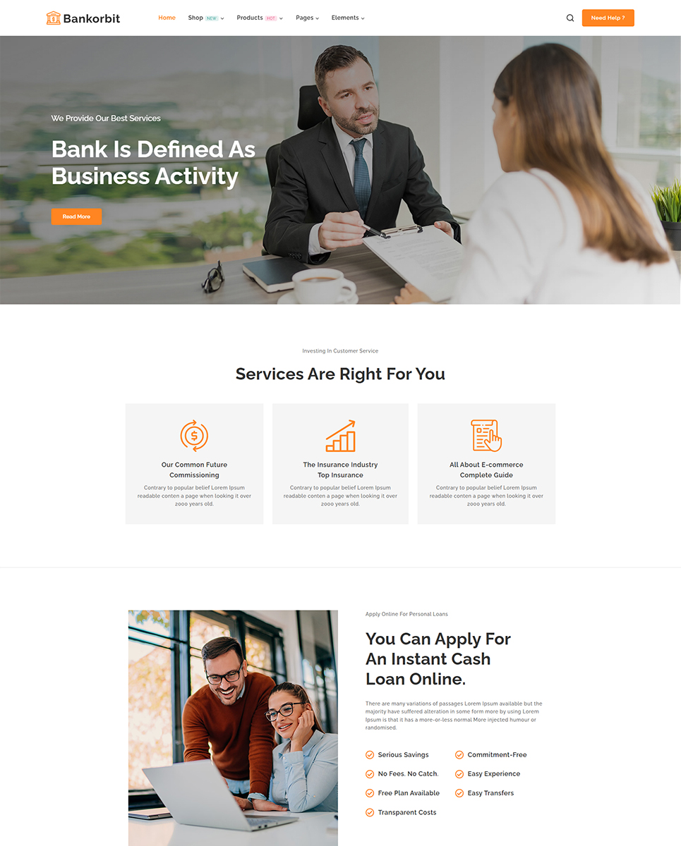 Bankorbit Banking, Loan and Financial wordpress theme is prepared for all businesses that are connected to the finance, banking, business consulting, loan and insurance, credit and debit cards sectors.