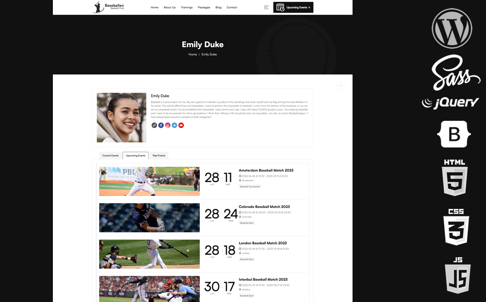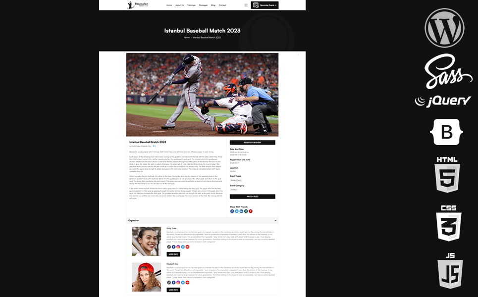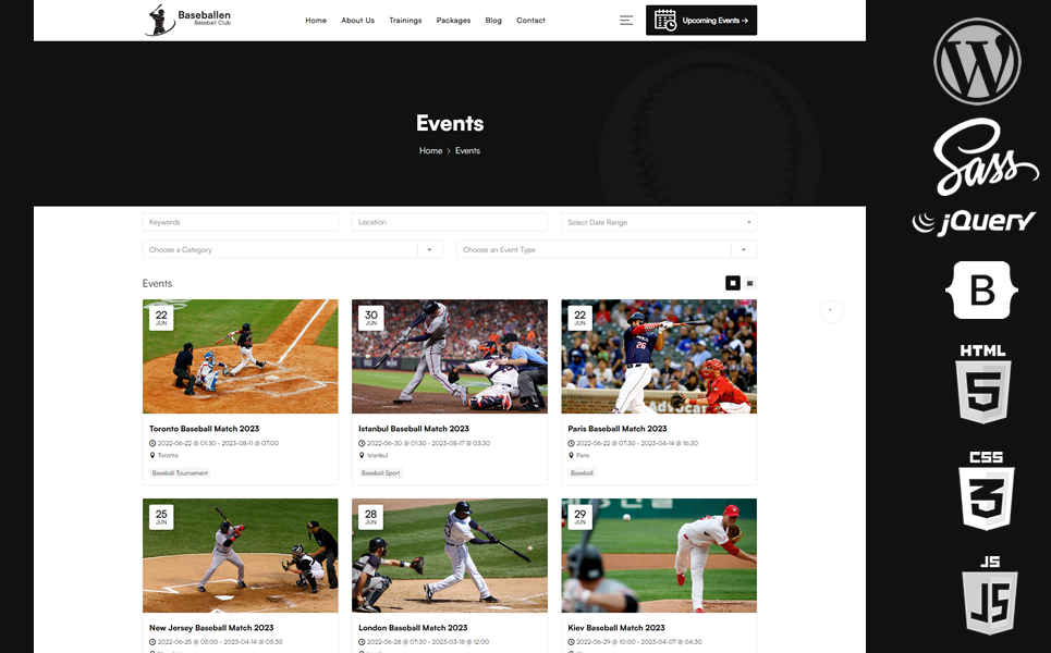 We have added areas where you can show your baseball training and activities with superior features. Thus, visitors to your site will see your trainings and events in a professional manner. And you will get high return.