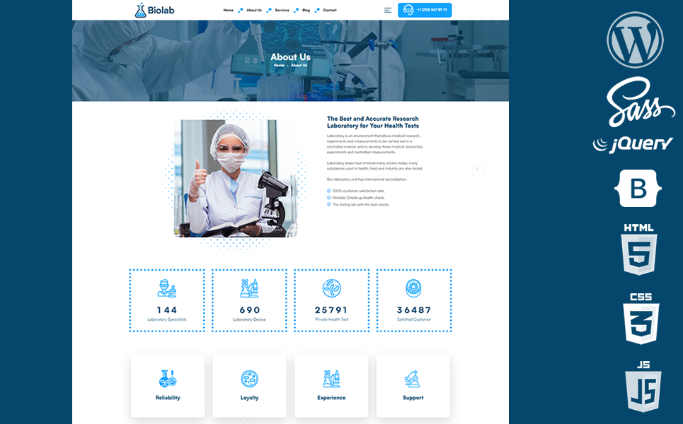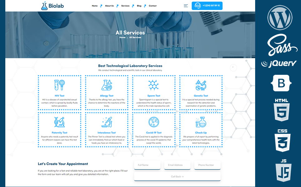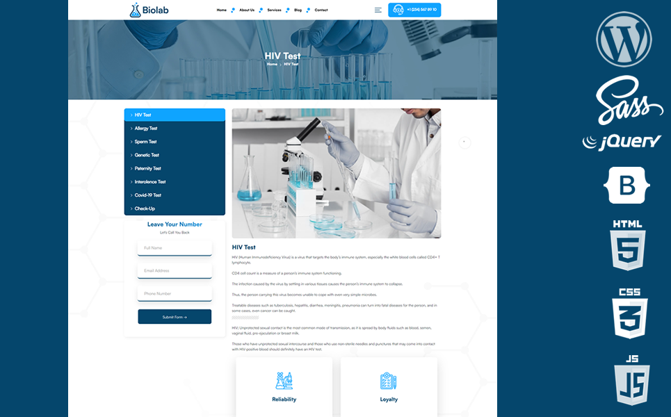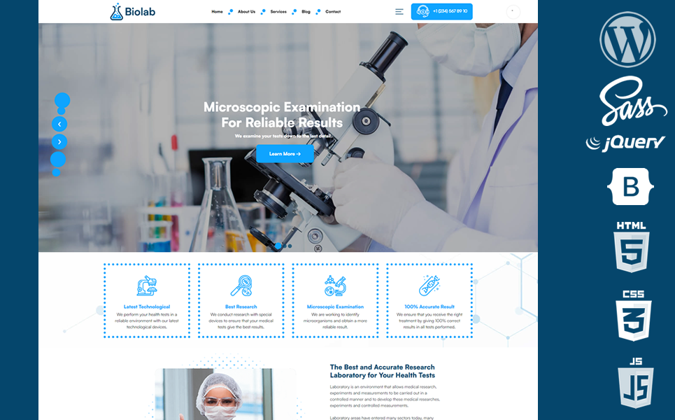 Biolab WordPress Theme is professional wordpress theme designed for Medical Lab, Health, Health Tests, Hospital, Doctor, Science, Research and All Medical Services.