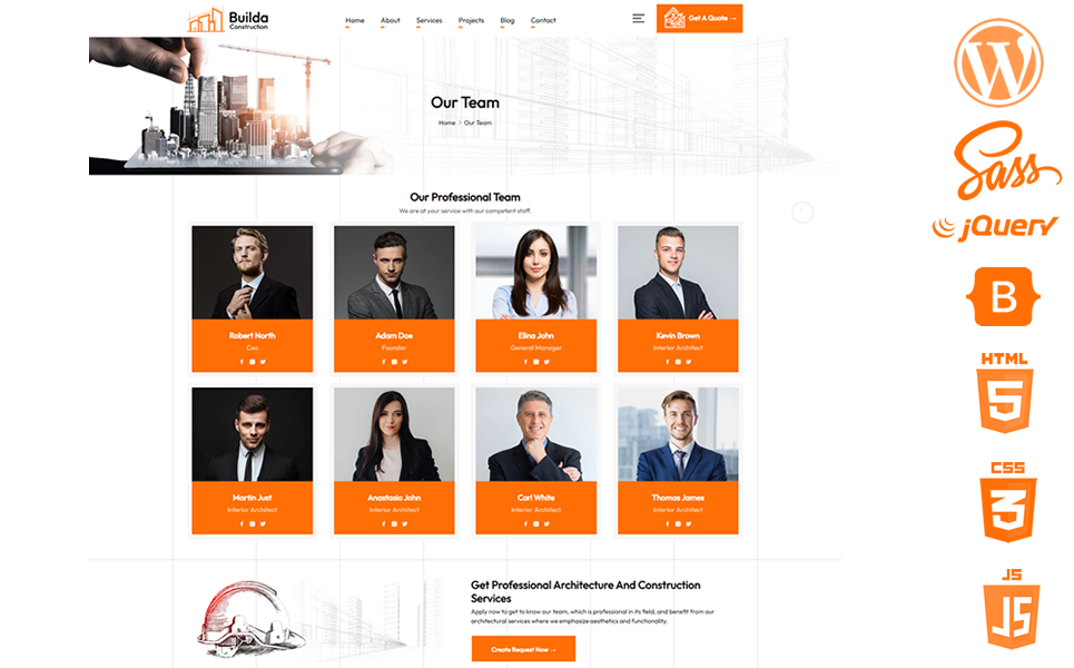 With the Builda wordpress theme, you will be able to show your services, projects, architects, clients and all your features in a creative layout.